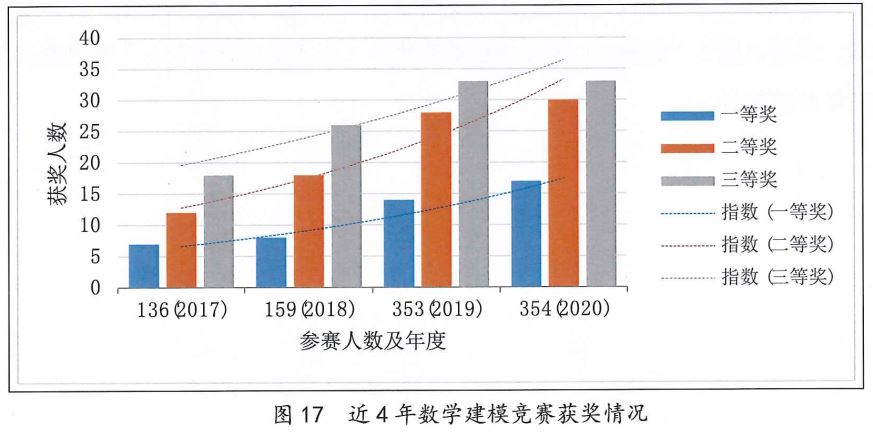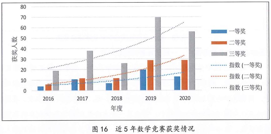 通过课内教学和课外实践的协同培育下,近5年学生参加全国大学生数学竞赛获奖人数从2016年的42人到2020年的123人;