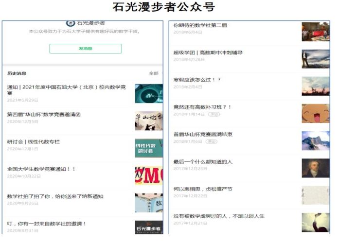 利用数学社团组织学生进行各类数学相关竞赛、数学科普等活动;依托建模竞赛和科技创新开展创新实践,定期推出实践项目,培养学生创新思维、驱动学生应用数学。