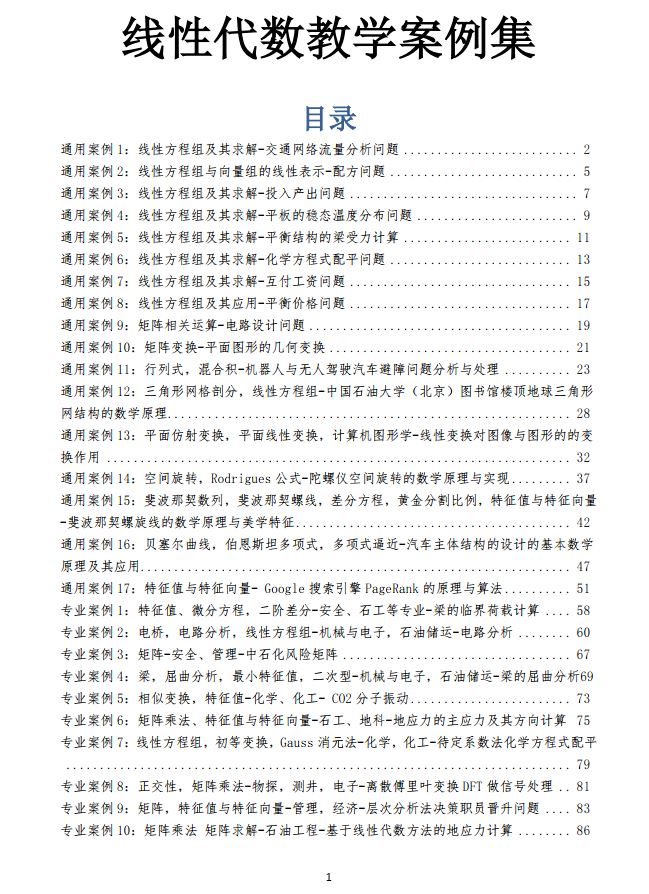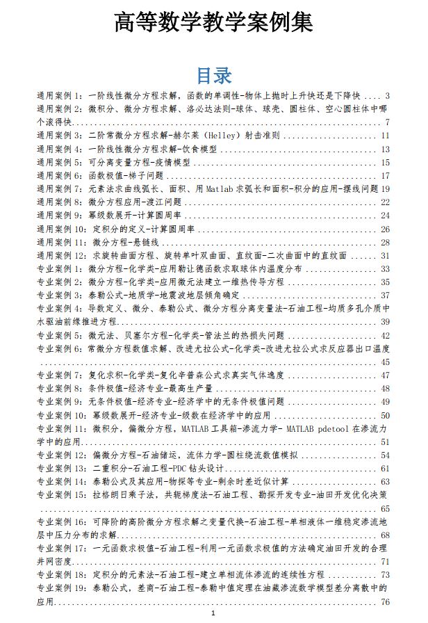 充分调研学生所学专业对数学知识的需求,结合数学课程内容和专业需求,建设了专业特色教学案例库(案例92个):