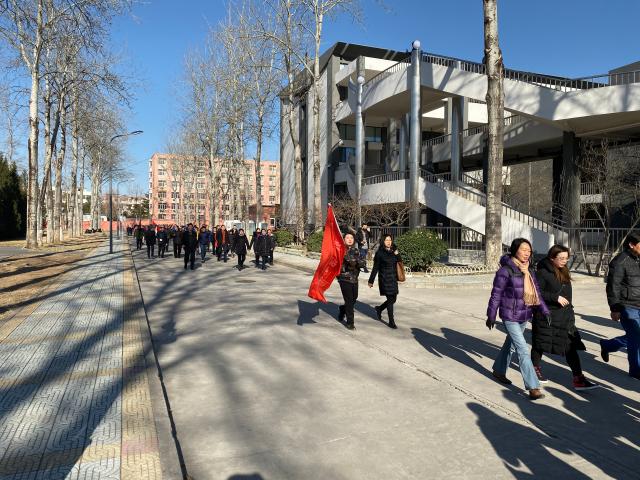 各单位教职工在东教学楼前的广场列队整齐,在学校体育与人文艺术学院教师的带领下进行热身准备活动。随着出发号令的响起,老师们甩开臂膀迈步沿规定路线行进。本次健步走活动线路为环东校园两周,总长度约5公里。虽然冬季气温较低,但中石大人锻炼的热情依旧高涨,大家一路欢声笑语,感受着健步走带来的欢乐。冬季是最适合健走锻炼的季节,冬季健走可以增强肺活量、保护心脏,同时也能缓解紧张情绪、舒缓心情。