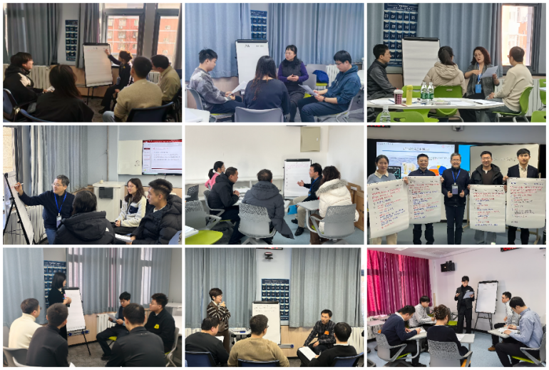 理论学习环节,引导员团队聚焦BOPPPS有效教学结构,阐释了导言、目标、前测、参与式学习、后测、总结六大核心环节的设计逻辑与实施要点,为参训教师提供了完整的课堂教学理论框架。分组演练环节,参训教师以3-5人小组为单位,运用BOPPPS结构进行微格教学设计与实操展示,引导员团队通过现场观摩、互动点评、小组研讨等方式,对教学设计、互动策略等方面提供专业化、个性化的反馈与辅导,引导参训教师优化教学环节设计。