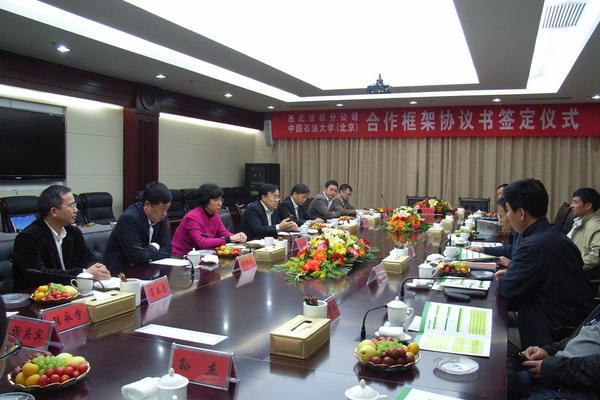10月9日下午,中国石油大学与中国石化西北油田分公司(以下简称中石化西北分公司)合作框架协议签字仪式在乌鲁木齐中石化西北分公司办公楼举行。校长张来斌、中石化西北分公司总经理刘中云先后讲话并代表双方在合作协议上签字。