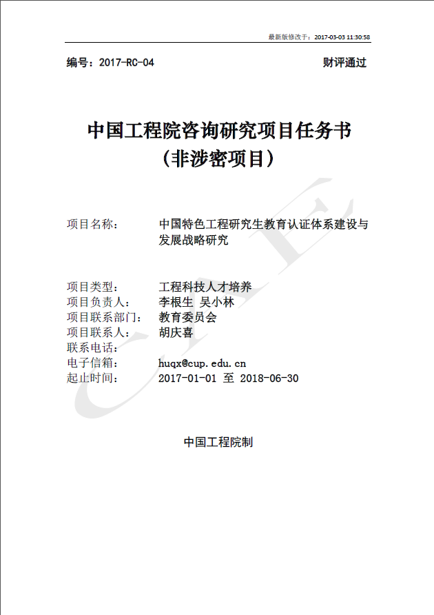 《中国特色工程研究生教育认证体系建设与发展战略研究》