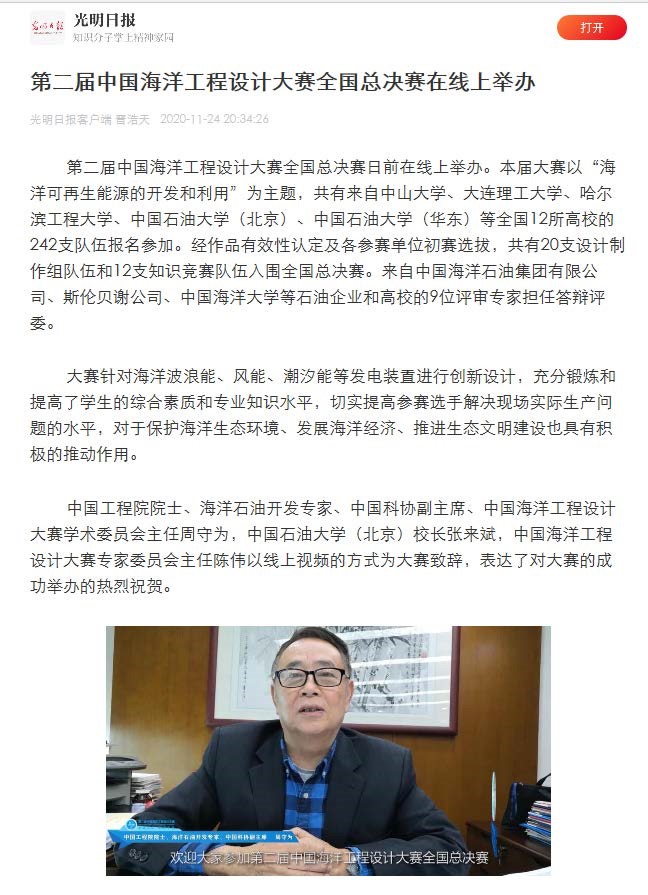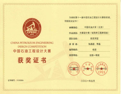 • 专业竞赛:举办中国海洋工程设计大赛,推动以赛促学、育人、共建新模式,开创“三全育人”新举措。目前成功举办两届,受到了包括人民网在内的等多家媒体的高度关注,已成为海洋油气工程领域内的品牌赛事;积极组织参加中国石油工程设计大赛,获卓越杯2次,一等奖2次,二等奖10余次。