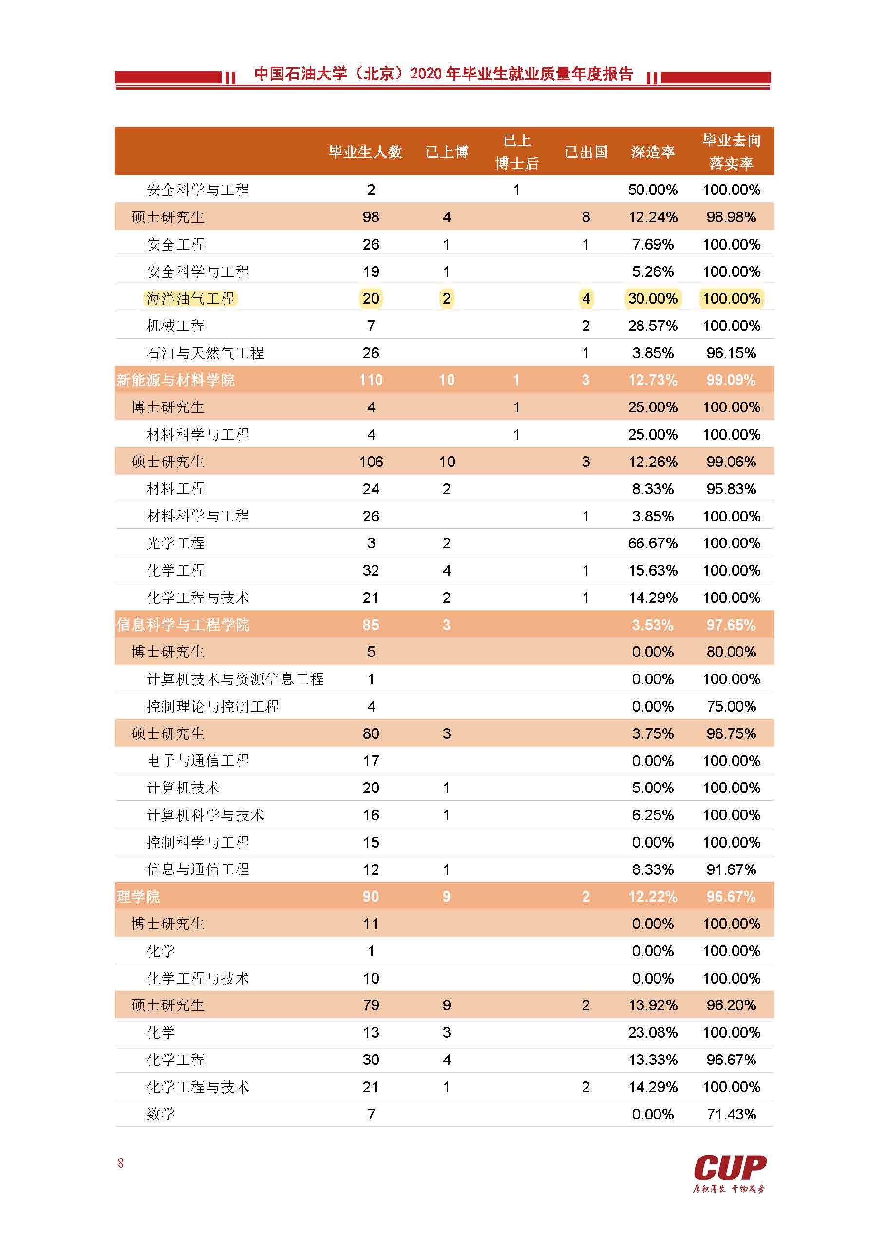 就业率:海洋油气工程专业就业供需比本科生1:5,研究生1:8,居全校前列;响应习近平总书记重要回信精神,到西部、基层、一线就业学生比例高达84%,引起社会广泛关注。
