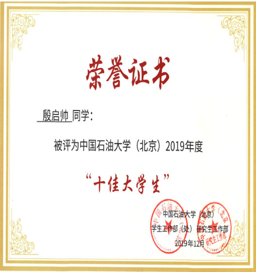 综合素质:注重学生综合素质培养与提升,20余人担任学校学生社团主席,切实为学校党团工作的发展贡献的力量。近三年,1人获中国大学生自强之星;2人获孙越崎优秀学生奖;2人获王涛英才奖学金;4人获中国石油大学校长奖;3人获校十佳大学生奖。