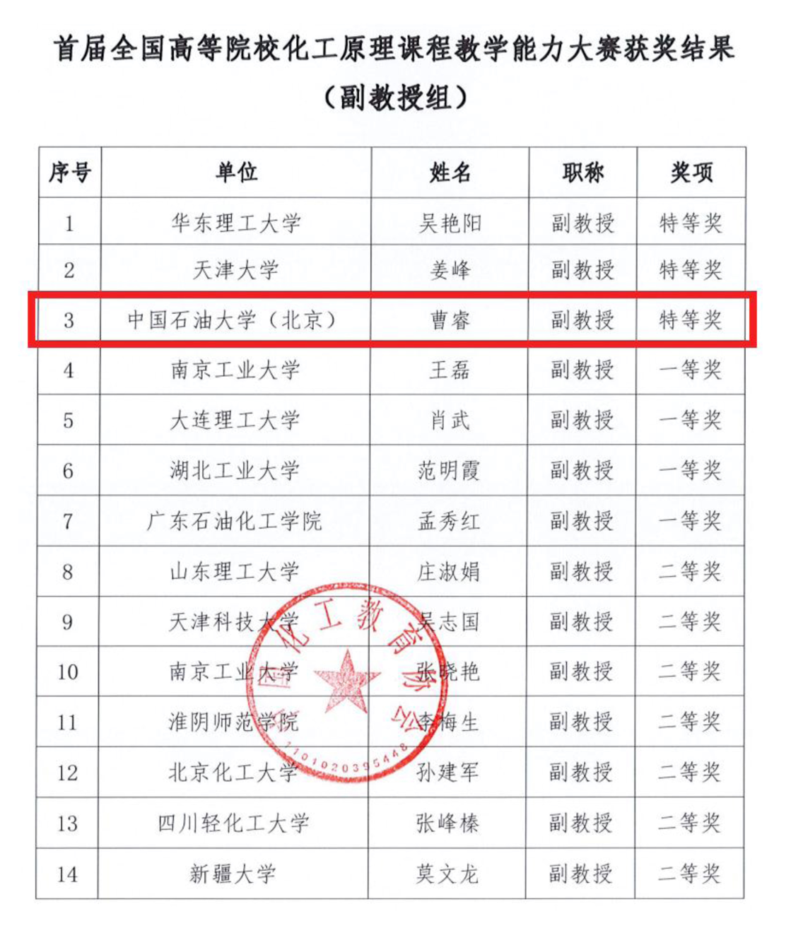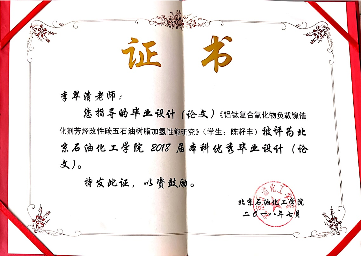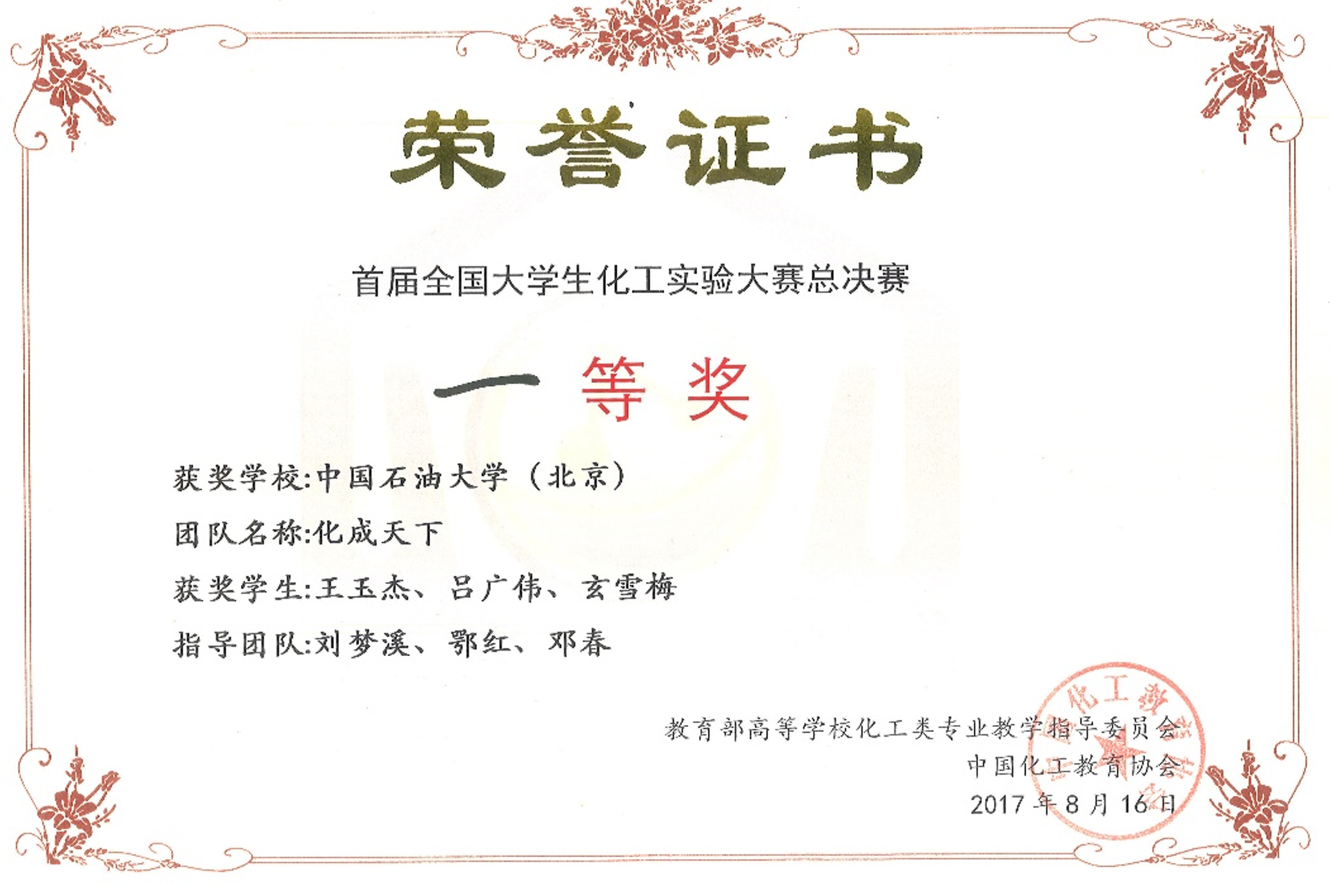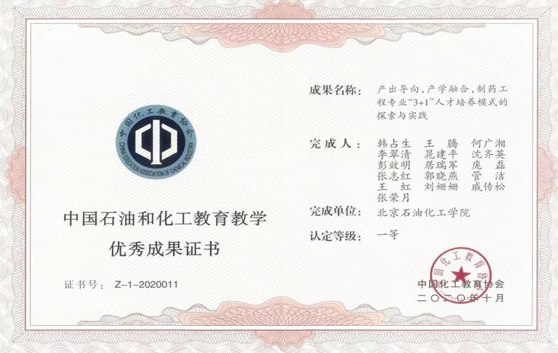 竞赛:参加北京市大学生化工原理竞赛和华北区、全国化工实验大赛,近五年获奖137项,其中全国奖励4项(一等奖1项,二等奖3项),华北区15项,北京市118项)。