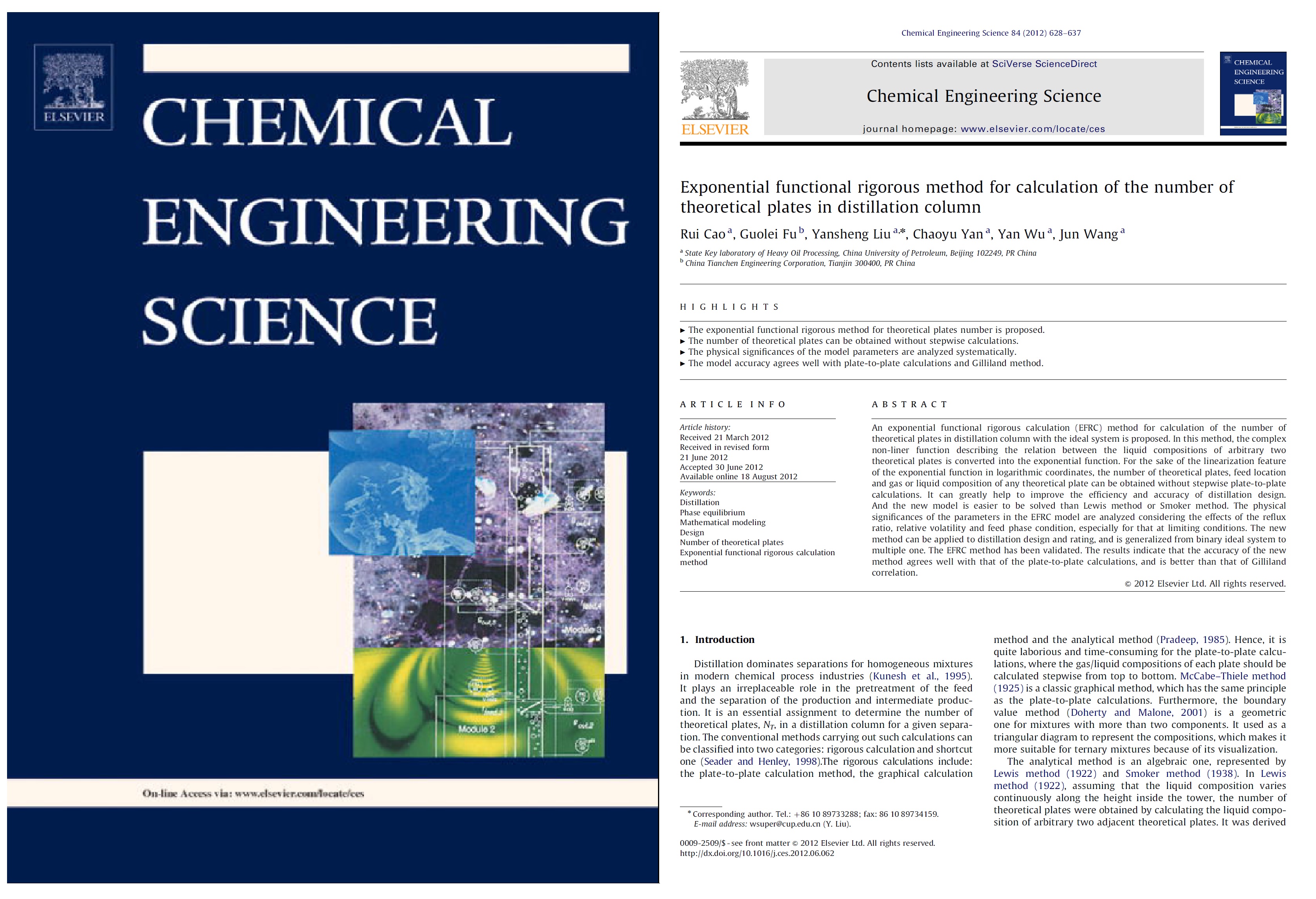 ③ 介绍自己开发的理论板数新计算法(EFRC法和EFSC法,在TOP期刊CES和IECR上发表),可替代逐板法和Gililland法。