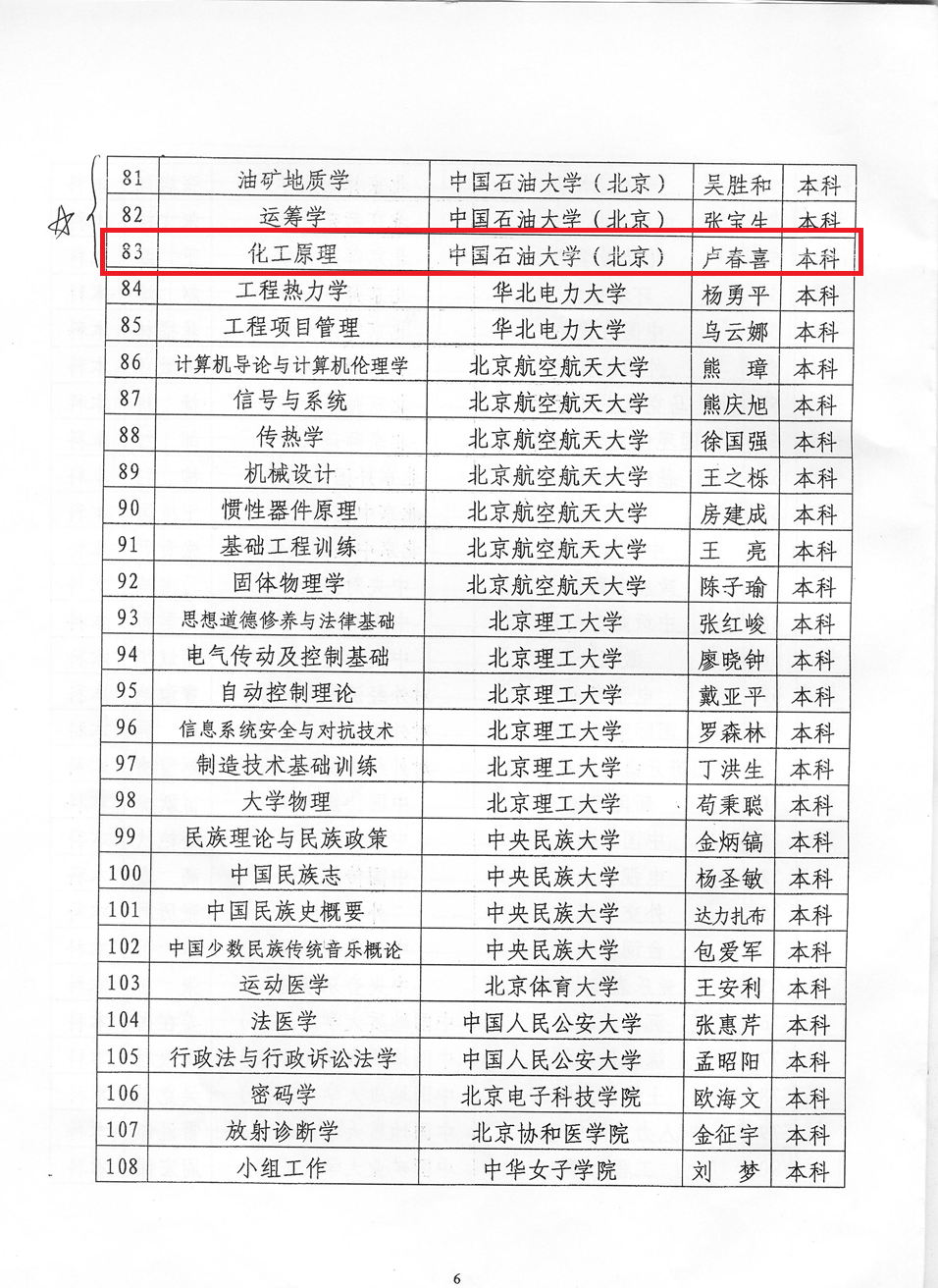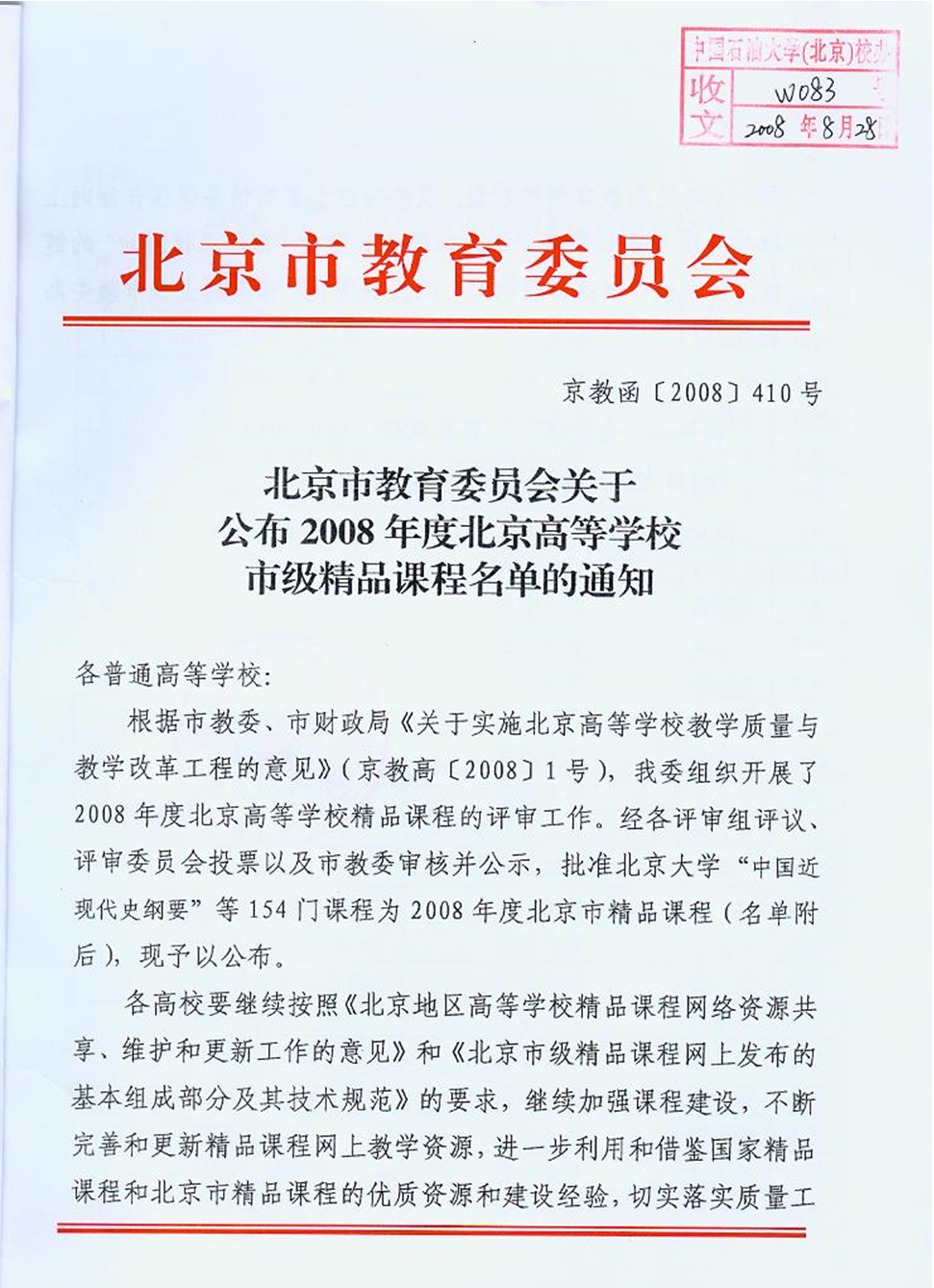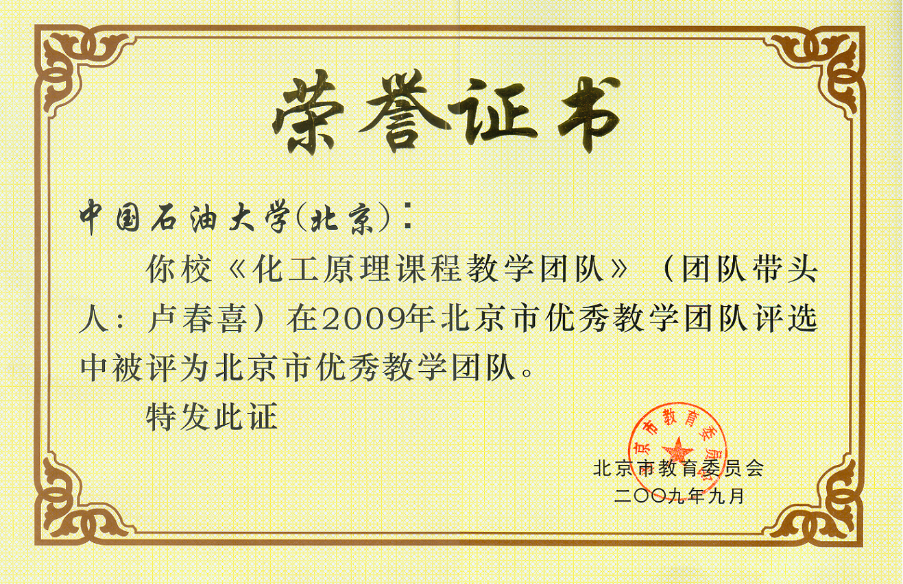 本课程被评为北京市精品课、团队被评为北京市优秀教学团队;有北京市教学名师1人,学校教学名师3人;973首席科学家1人,国家自然基金优秀青年基金1人;校品牌课教师1人,院品牌课教师3人。