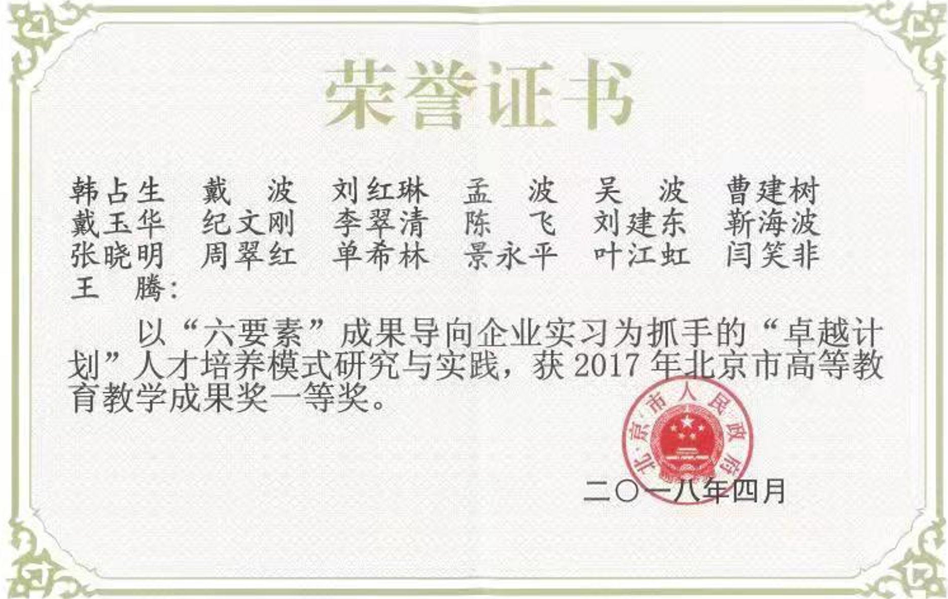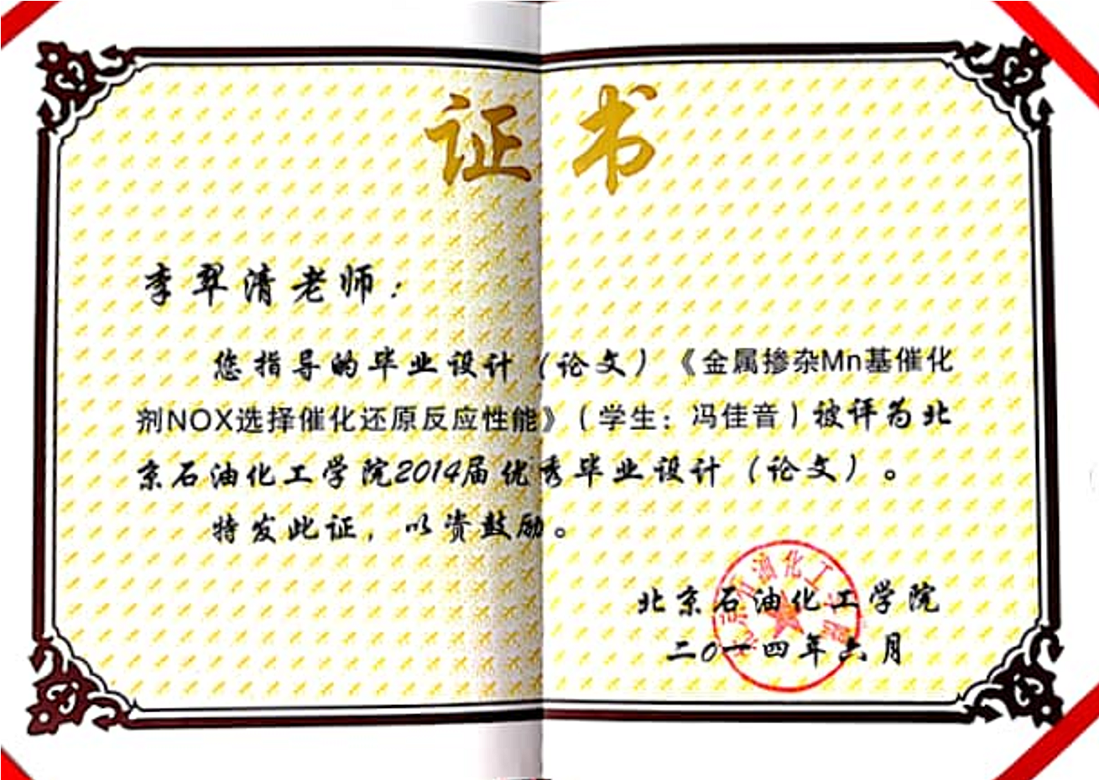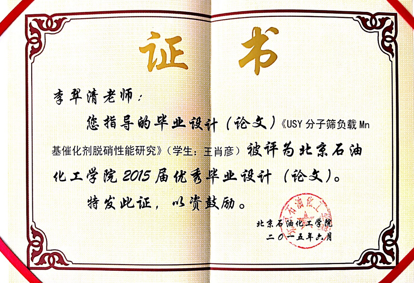 学生论文奖励:获得北京市优秀毕业论文1项,发表3篇教学论文。
