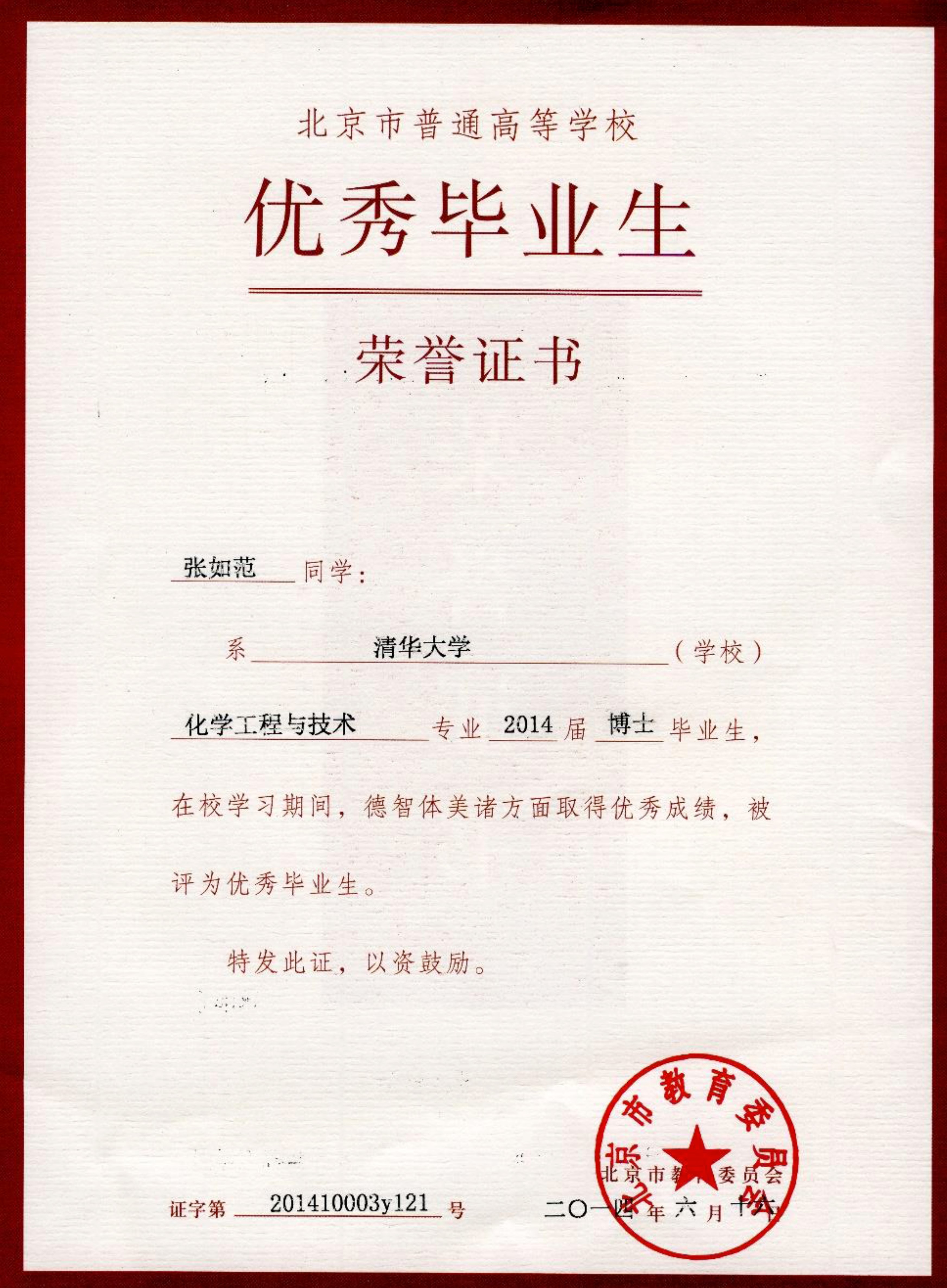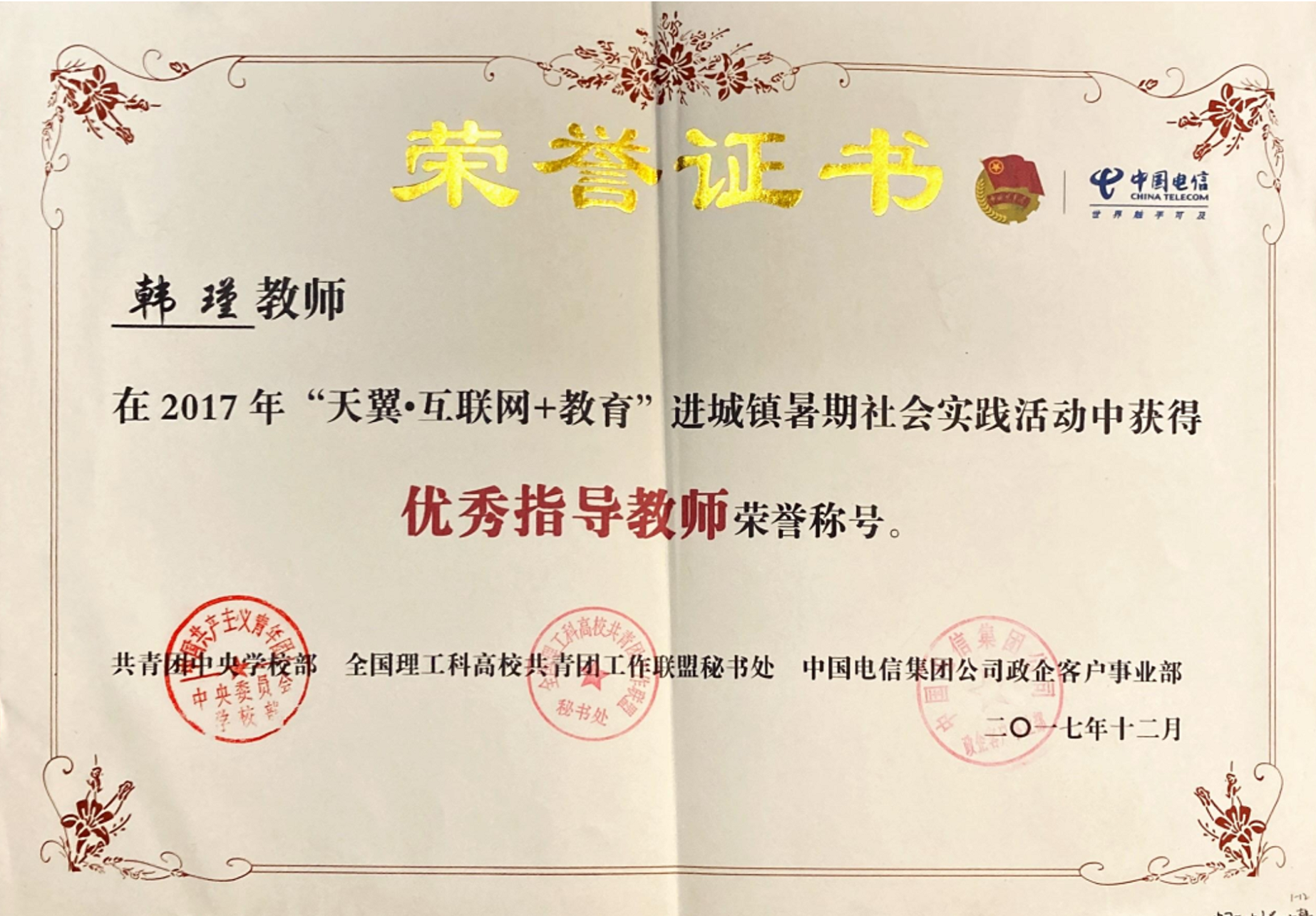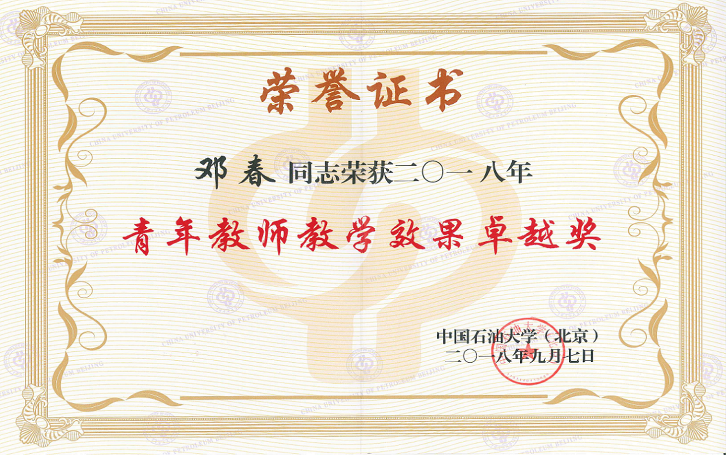 学生论文奖励:获得北京市优秀毕业论文1项,发表3篇教学论文。