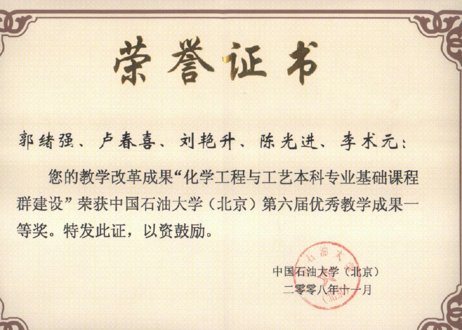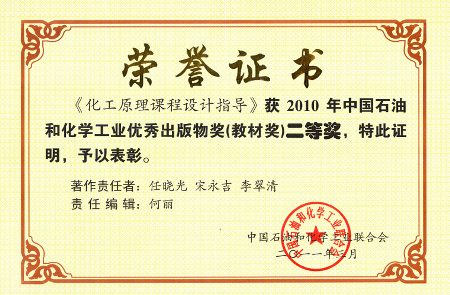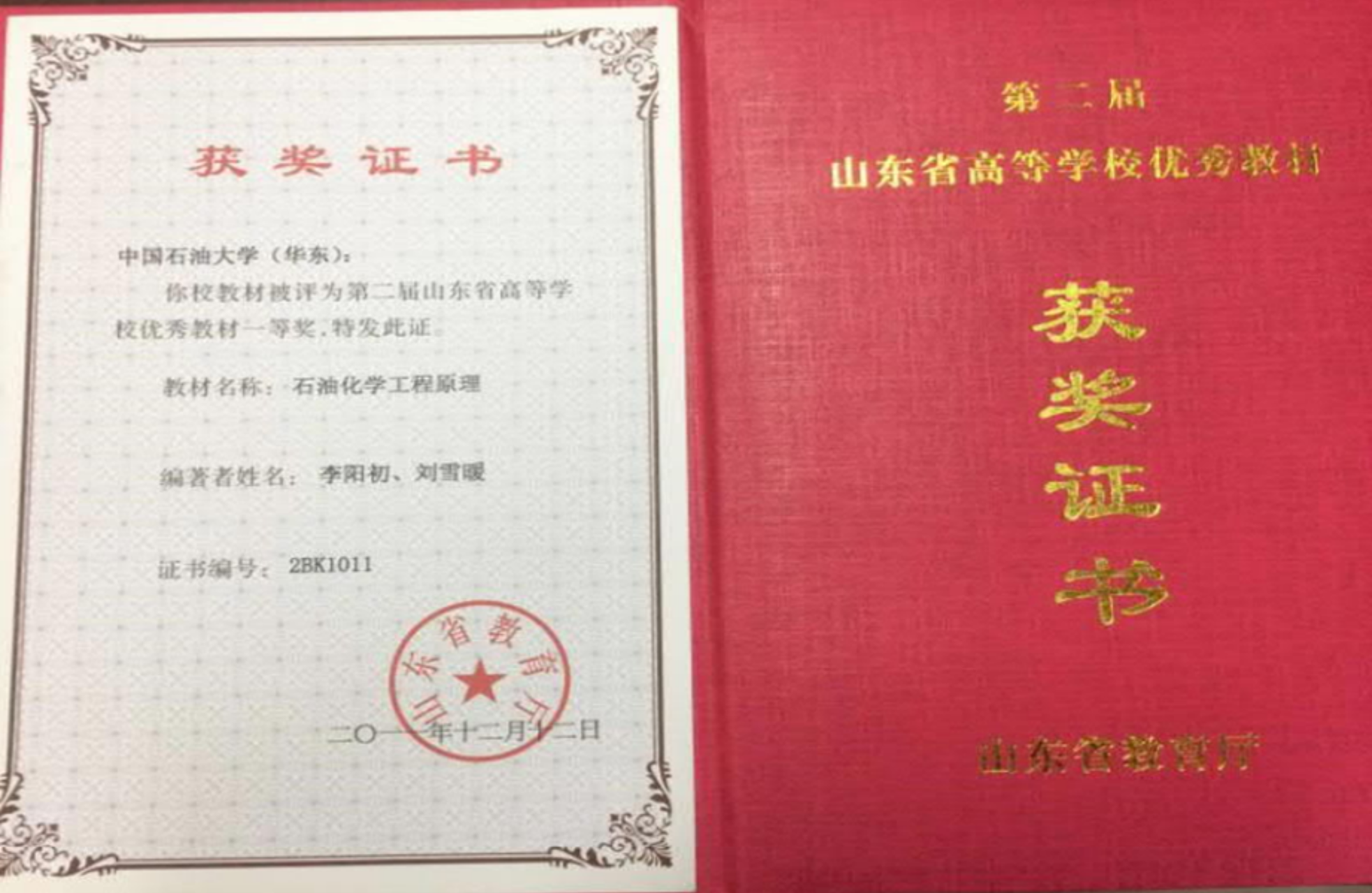 参编“十一五”国家级化工原理教材《石油化学工程原理》,被中国石油大学(华东)、北京石油化工学院等多所高校采用,获得山东省优秀教材一等奖。