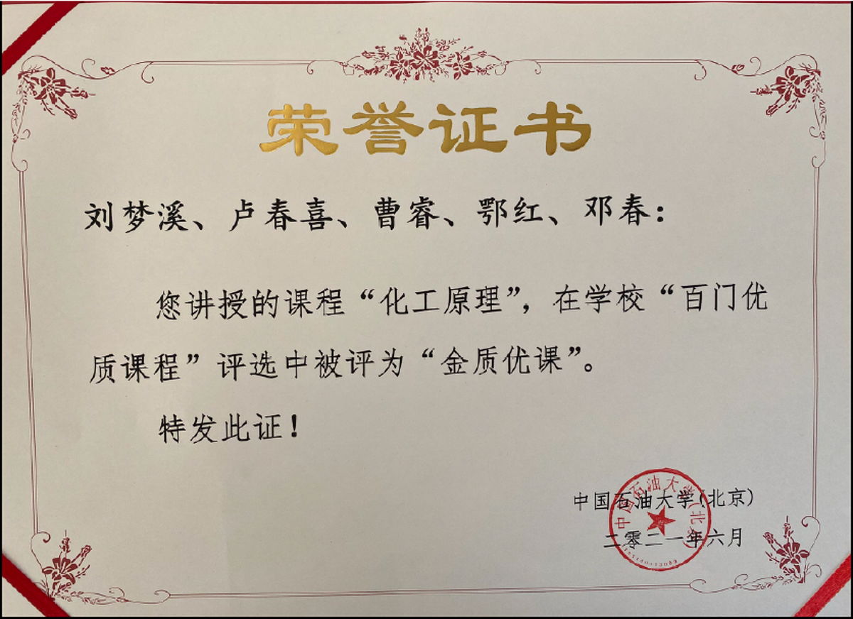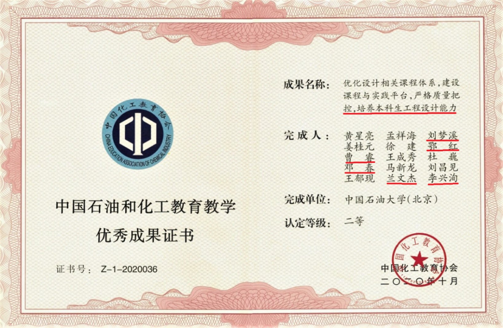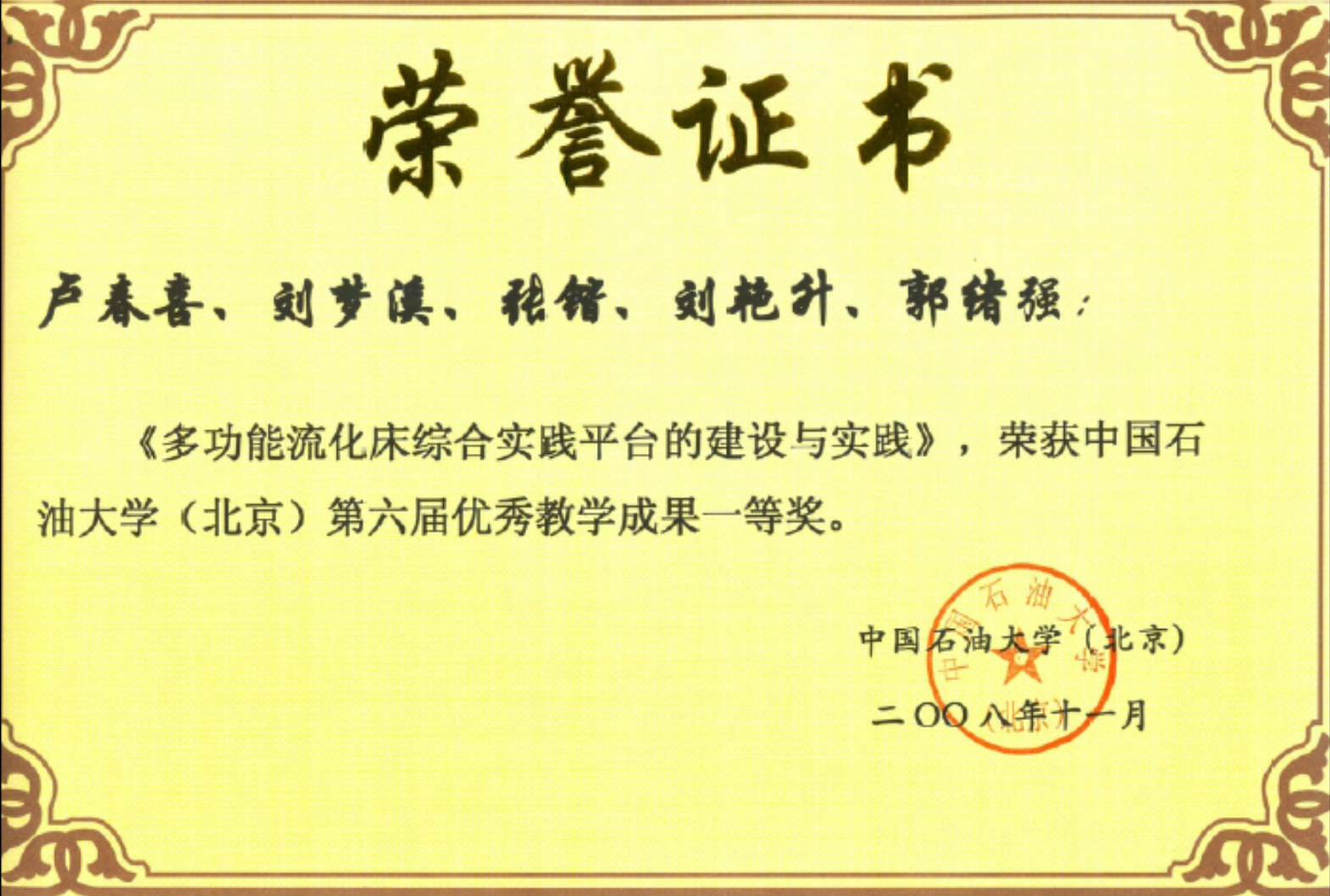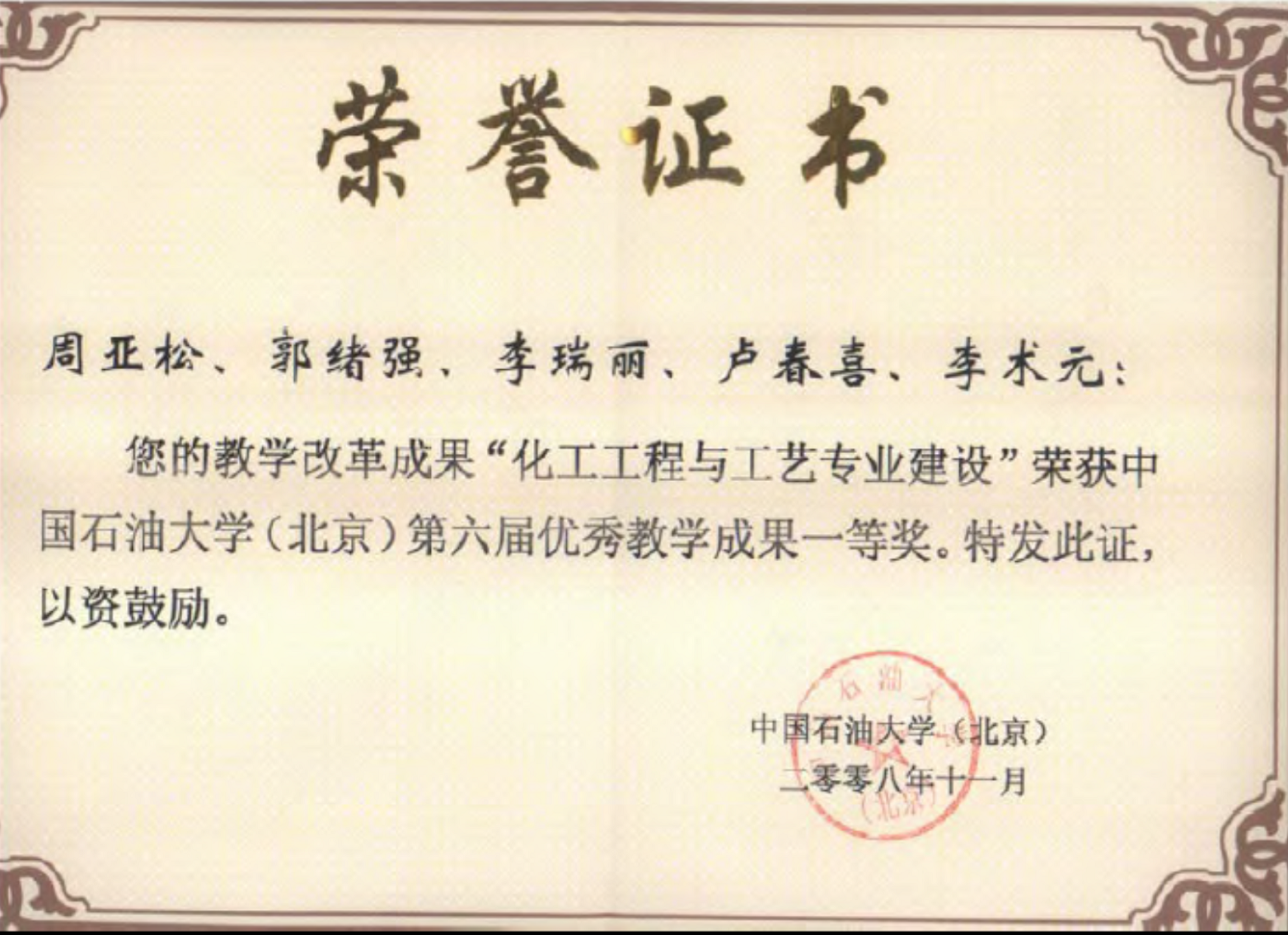 参编“十一五”国家级化工原理教材《石油化学工程原理》,被中国石油大学(华东)、北京石油化工学院等多所高校采用,获得山东省优秀教材一等奖。
