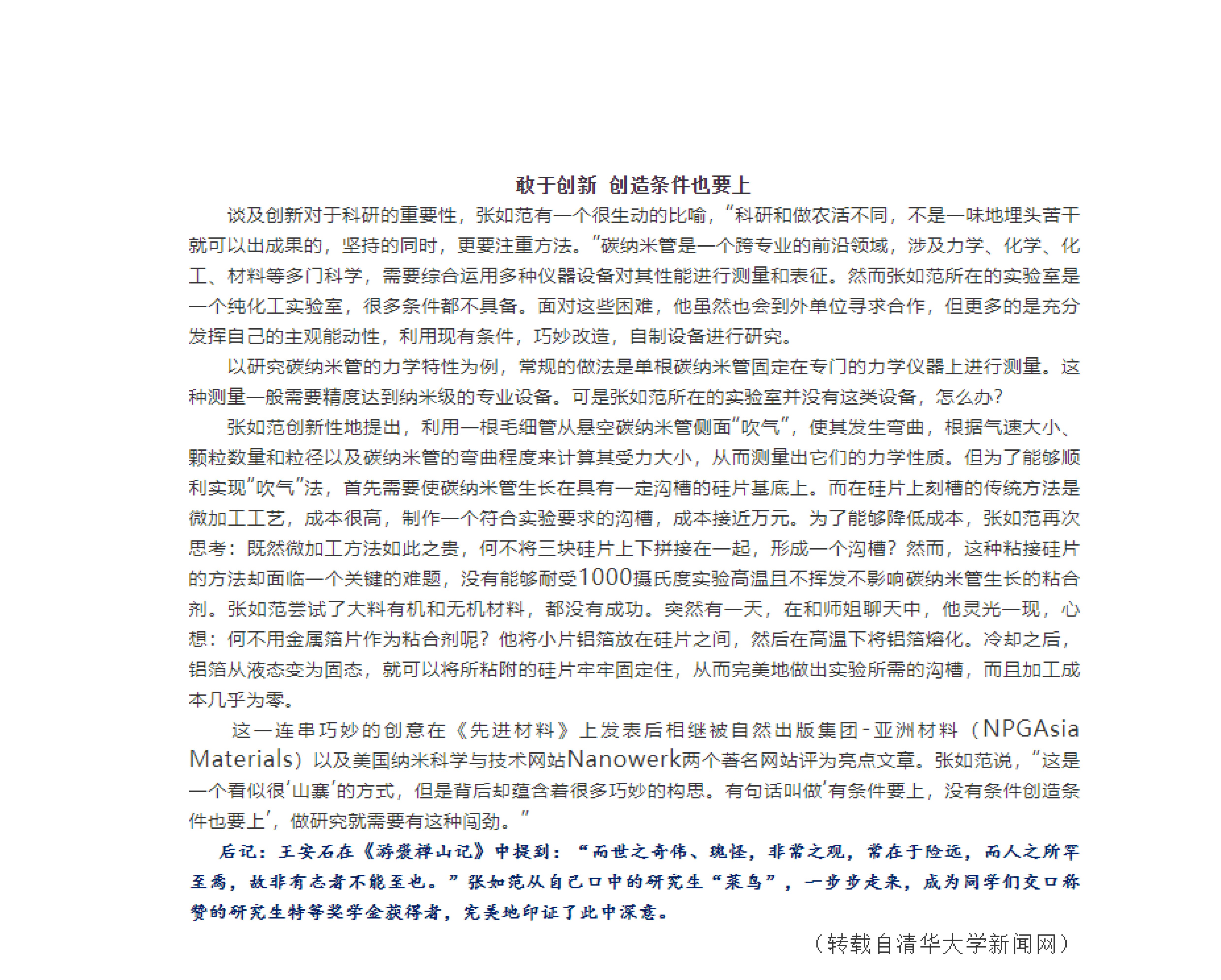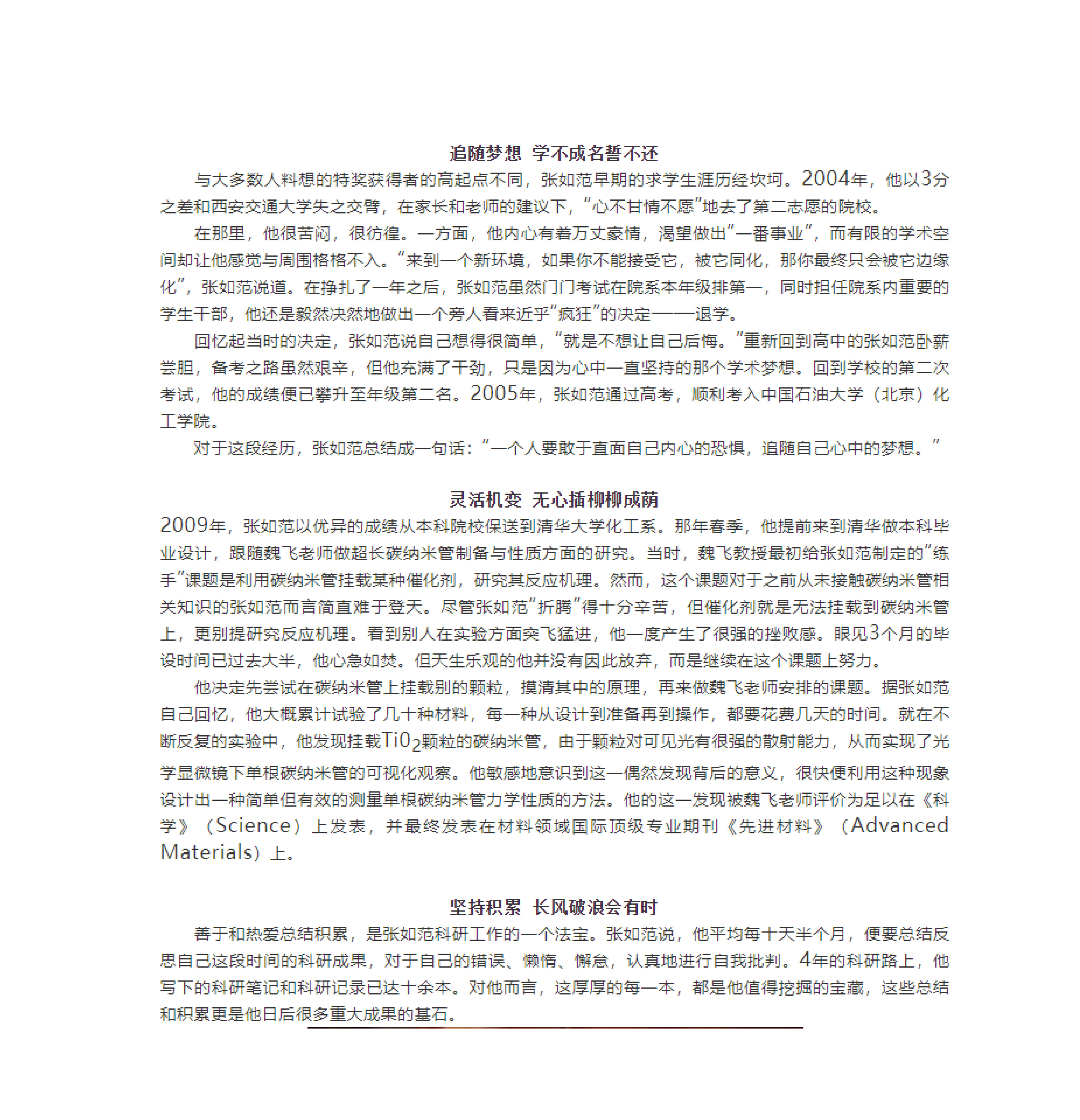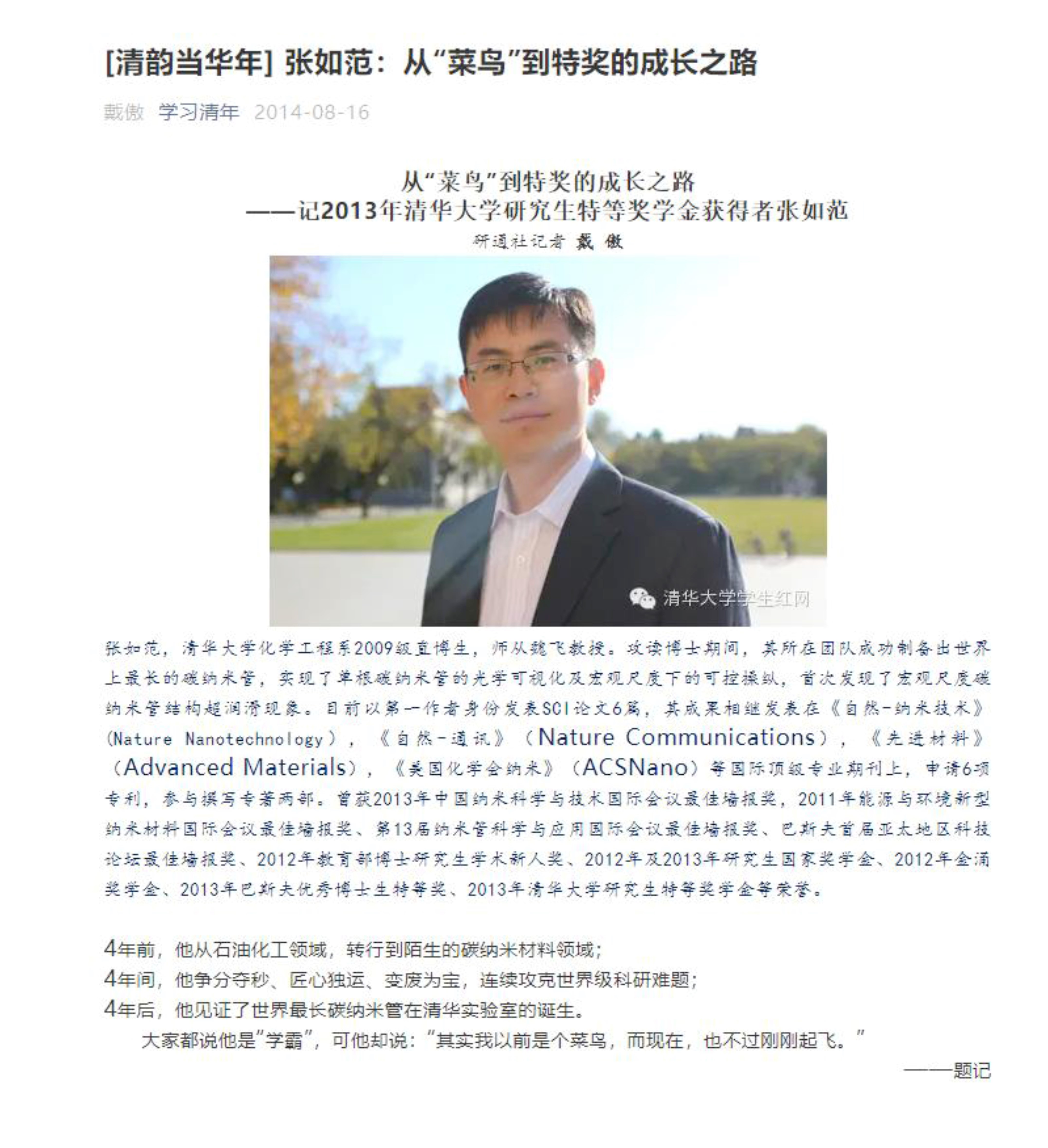 现清华大学任教,依托在校培养的实践操作技能,为综合素质提升打下了良好基础,工作后成功攻克实验难题,在Nature上发表了高水平文章。获得瑞士Chorafas青年研究奖、教育部自然科学一等奖、中国化学会青年奖等15项重量级奖励。