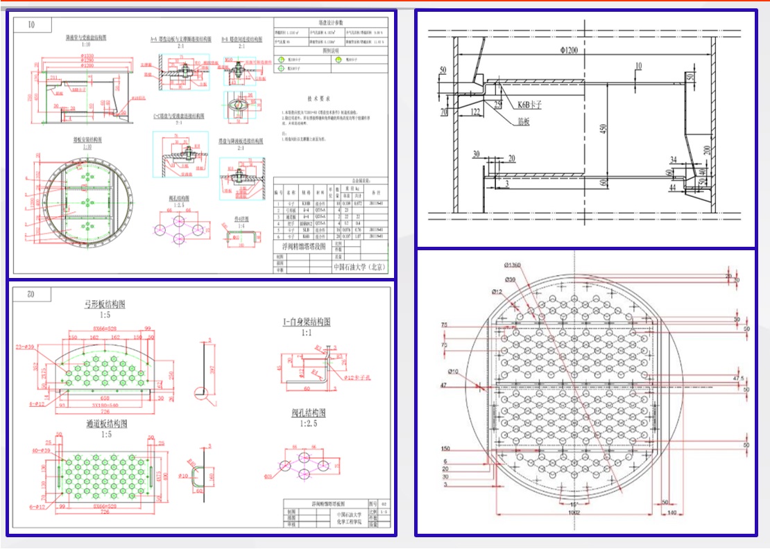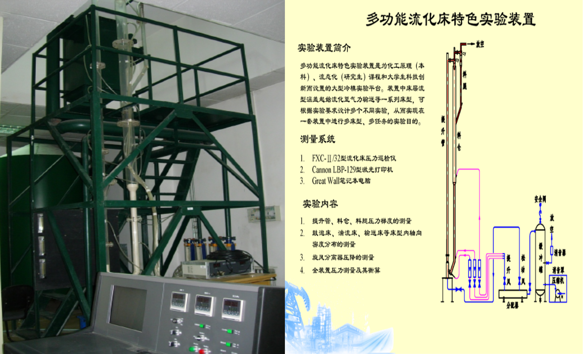 ① 6400×800mm全国最大规模的冷模精馏塔;② Φ1200mm工业标准浮阀塔;③ 大型循环流化床;④ 流化焦化反应器;⑤ 有机废气VOCs一体净化装置;⑥ 典型单元过程大型综合实验装置。