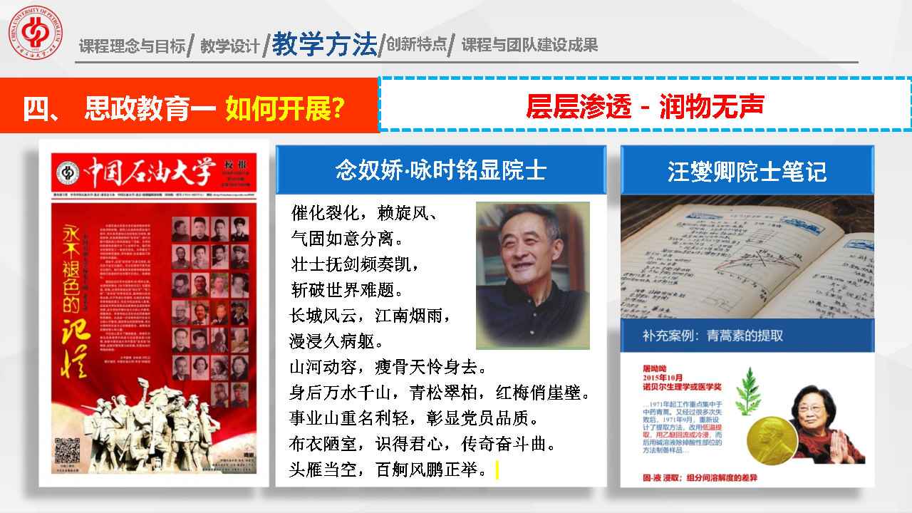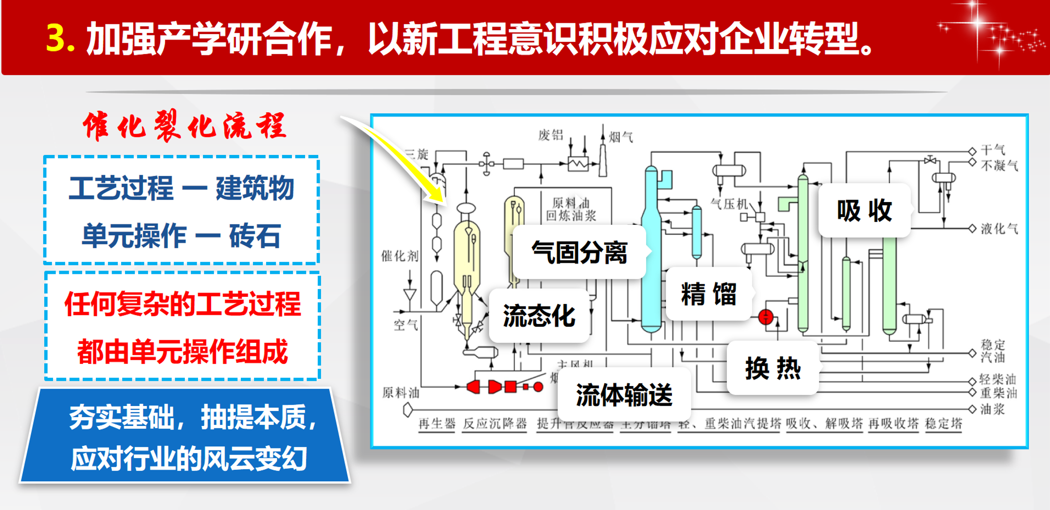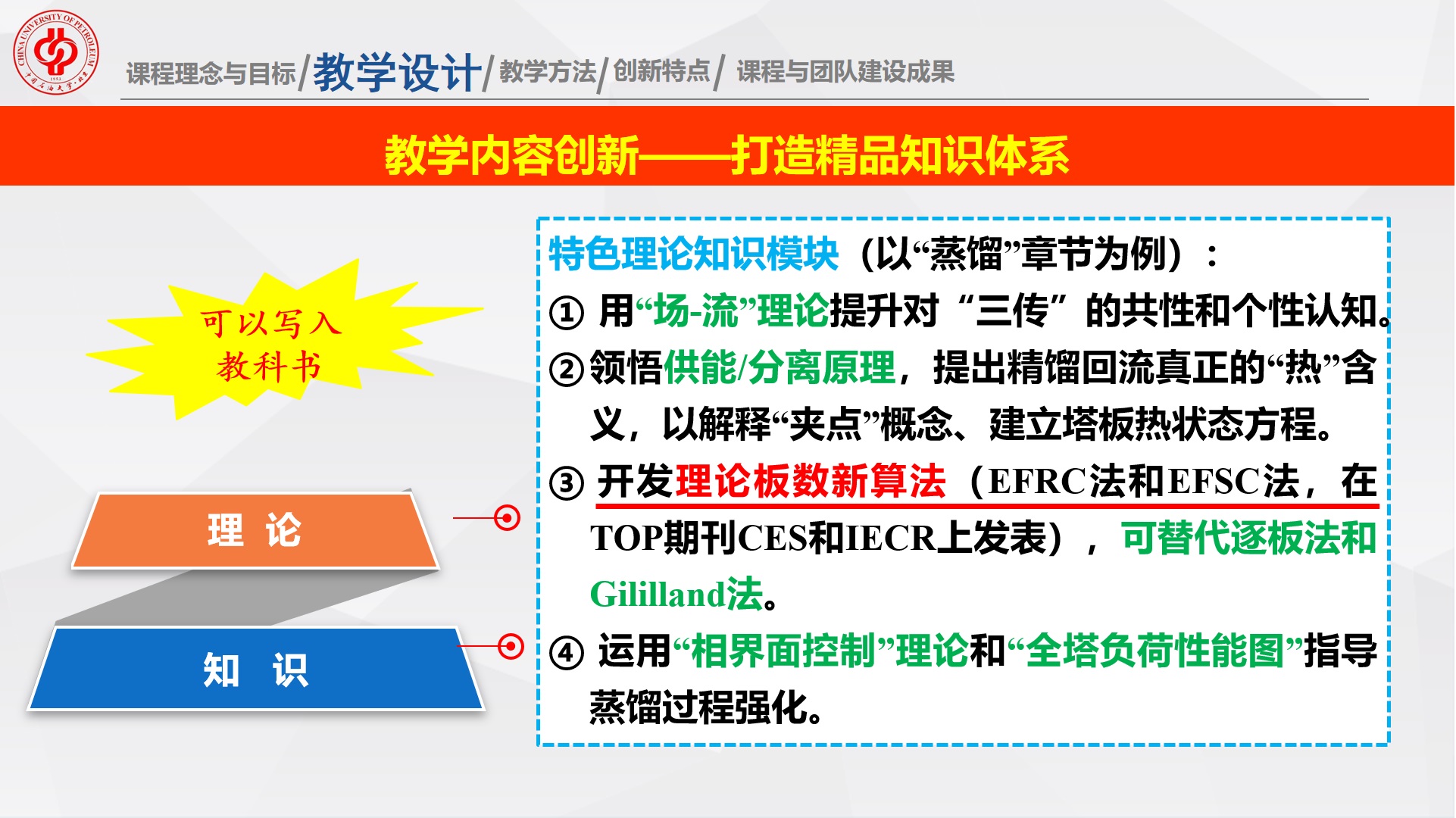 ② 如何提升对单元过程的理论认知高度、突出知识体系的先进性。构建教学内容时应针对行业发展的重大导向和前瞻性科学理论,优质科研平台积累的一流学科知识和先进单元技术承待融入教学。