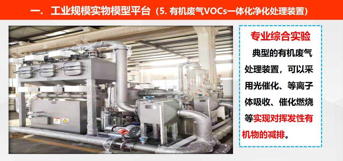⑤ 大型有机废气VOCs一体化净化处理装置:采用光催化、等离子体吸收、催化燃烧等新技术实现挥发性实现有机物减排。
