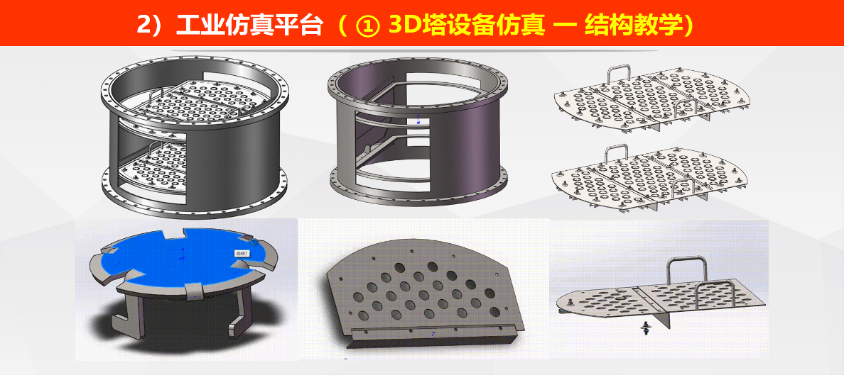 ① 3D塔设备仿真和流态化动态模拟:实现了设备的三维设计和智能装配,可视化教学方便学生了解工程实施过程,还拍摄了完整视频,丰富了课堂教学。
