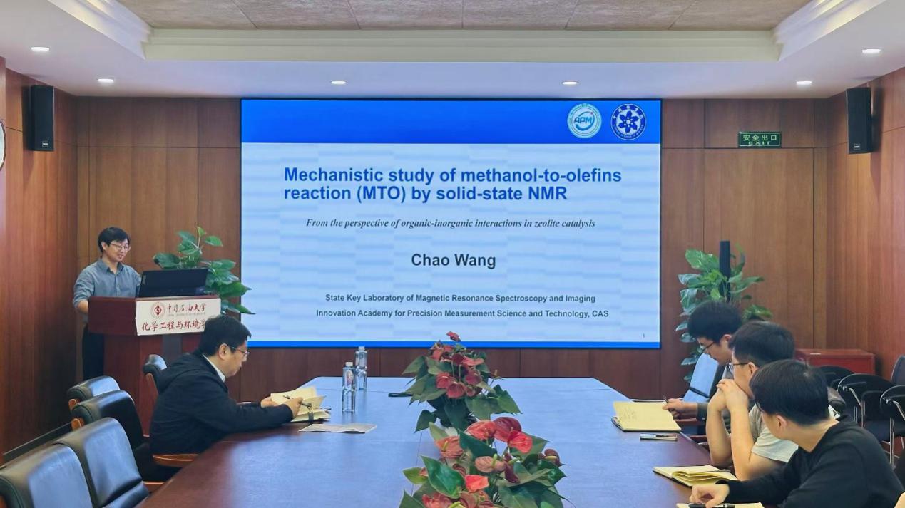 为深化催化领域学术交流,拓宽师生科研视野,2026年4月23日下午,应化学工程与环境学院杨庆鑫副教授邀请,中国科学院精密测量科学与技术创新研究院王超研究员来访我院,并在化工楼B403会议室作题为《分子筛催化甲醇制烯烃反应机理研究》的学术报告。报告会由姜桂元教授主持,来自化学工程与环境学院、理学院、新能源与材料学院的部分师生参加了此次报告会。