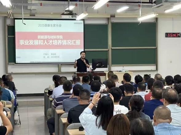 入学教育期间,学院通过新生家长会、见面会等形式,全面介绍了学院学科特色和人才培养体系。材料科学与工程专业系主任于开元老师以“什么是材料”为起点为同学们解读专业体系,储能科学与工程专业系主任徐泉老师、新能源科学与工程专业负责人王雅君老师也分别对储能、新能源两个专业开展专业认知教育,深入解读专业的发展前景。在规章制度教育环节,学院结合真实案例开展校规校纪和防范电信诈骗宣传,强化新生安全意识。