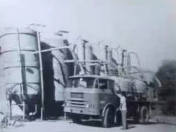 在工作过程中,我们思考,要达到课题的要求,不仅需要减轻劳动强度、提高施工质量,还应改善劳动环境、减少水泥破袋的地面浪费情况(每次大约最多损耗20%的水泥)。后来我们了解到,国家建委有一项节约水泥包装费用、减少使用木材制造包装袋的要求。这是一项涉及从水泥出厂到施工作业,包括装、卸、运输、储存、施工等各个环节的系统工作,需要多部门一系列的配套和支持才能做到。按照这个思路,我们开始利用501水泥厂距油田较近的条件,在石油工业部、国家建委、冶金部的共同支持下,在油田作了局部的试点方案,改装了四台运输散装水泥车,在油田供应处建立散装水泥转运储缸,并在固井大队建设了几个中转储装散装水泥储缸,收到较好效果。