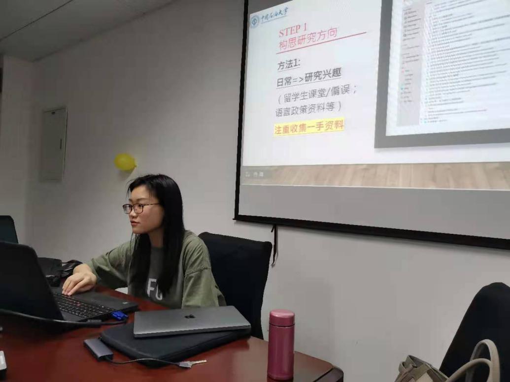 学姐们结合自己的论文写作历程,分别从选题、语料收集、时间计划、学术规范等方面与大家做了分享,尤其提到在选题时要多读最新的高质量期刊论文,同时结合自己的兴趣,及时与导师沟通交流,确定题目的可行性。在进行文献综述写作时,不能单点罗列前人的观点,要学会归纳与总结。同时要做好写作进度安排,按照计划完成任务,避免最后赶工造成论文质量差等方面的问题。每次分享会都以交流答疑的形式结束,学姐们认真回答研一同学提出的问题,给他们提出一些切实可行的建议。