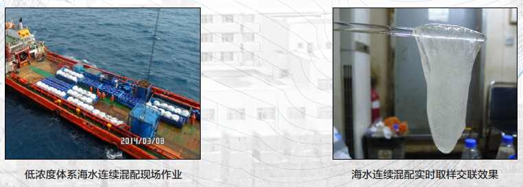 低浓度胍胶压裂液和连续混配低浓度胍胶压裂液在新疆油田致密油区块、塔里木志留系低渗透区块和吐哈红台致密气、三塘湖致密油区块进行了应用;为满足海上小作业平台的大型压裂施工,进行了海水连续混配压裂施工,现场应用均取得突出效果。