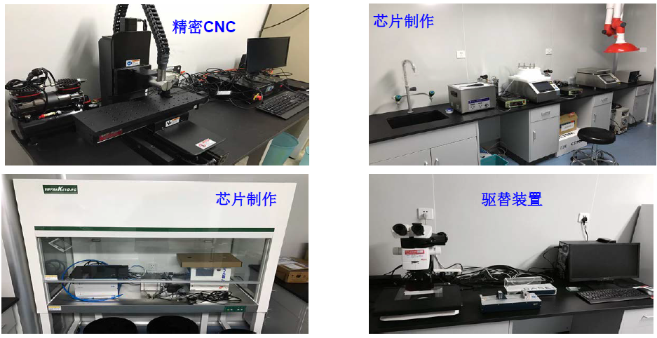 3.Lab-On-Chip微观可视化物理模拟,微纳尺度芯片(宽:1μm, 深:50nm)、微流控芯片油水多相流实验、纳尺度通道单相/两相驱替实验、水力压裂液微通道中减阻剂运移特征,实现常规及非常规微纳尺度渗流特征研究,揭示微纳尺度孔隙中微观渗流机理。