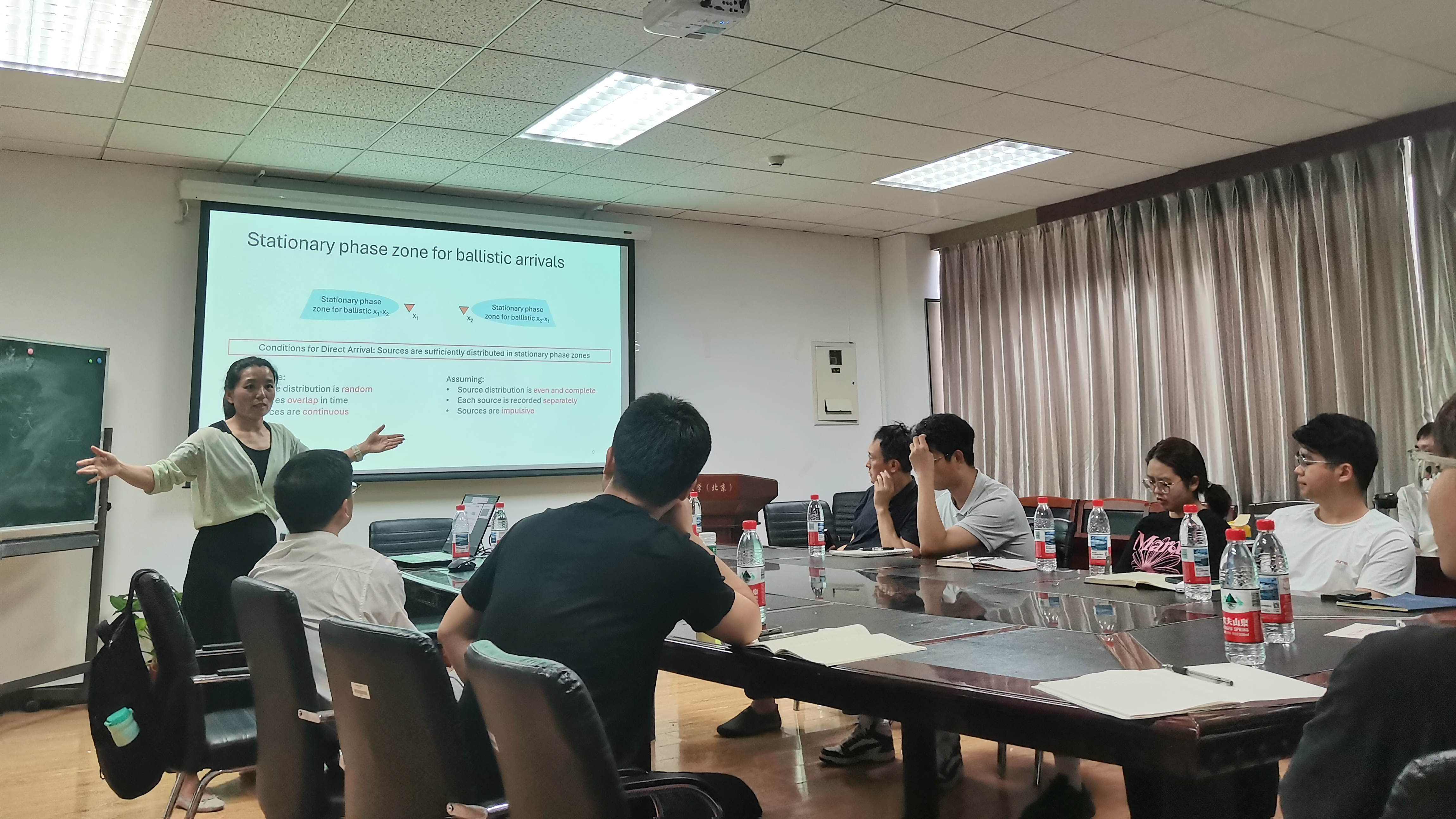 2025年6月13日上午,美国普渡大学(Purdue University)李云月教授应我院刘洋教授邀请,在地质楼525会议室作了题为“地震背景噪声互相关函数中散射波的稳相分析”的学术报告。