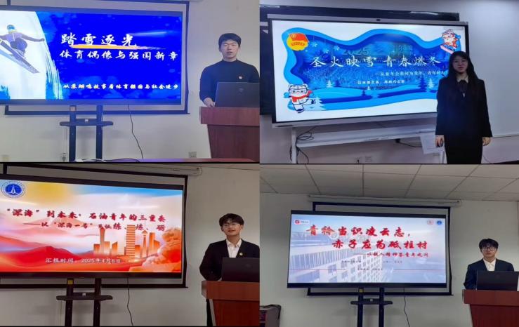 晋级作品为:2022级徐瑞阳《圣火映雪,青春燃冬》、2024级赵一鸣《踏雪逐光,体育偶像与强国新章》、申宇航《从深海到未来:石油青年的三重奏》、朱文宇《青衿当识凌云志,赤子应为砥柱材》。杨耀东老师《脚步丈量祖国大地——在乡村振兴中感受青年力量》、马文龙老师《续写新时代的雷锋日记》。