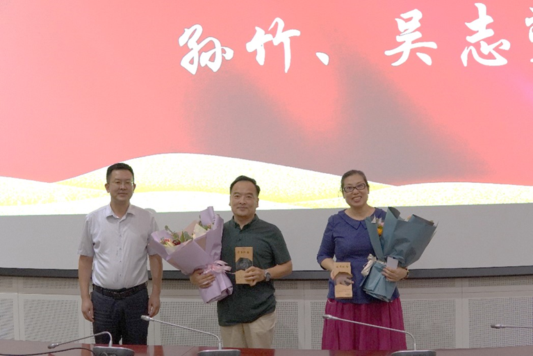 朱义清和院长唐旭代表学院向新入职的包莹、吴凡、赵万里、李文亮四位教师颁发入职纪念证书。包莹作为新进教师代表发表感言,表示此次活动让新进教师充分感受到学院的温暖与关怀,未来他们将持续学习,全身心投入工作,提升业务能力水平,为学院的建设和发展增砖添瓦。