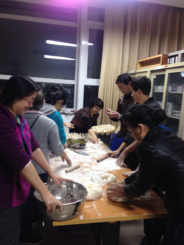 本次活动包括两部分:新年茶话会、包饺子。活动前工会委员进行了精心策划,事先统计好参加人数,以便根据人数进行准备,杜绝浪费。提倡节俭,建议老师们自带餐具,不使用一次性碗筷;各工会小组长通知工会成员每人自带一个自己的拿手菜;每个工会自带电磁炉一个、案板、擀面杖若干。为烘托节日的气氛又不铺张,大家集思广益对403进行了简单又不失喜庆的布置。茶话会上退休教师代表发表了退休感言。吃过饺子,分享过各自的拿手好菜,又进行了击鼓传球游戏、抱球赛跑游戏和踩气球。