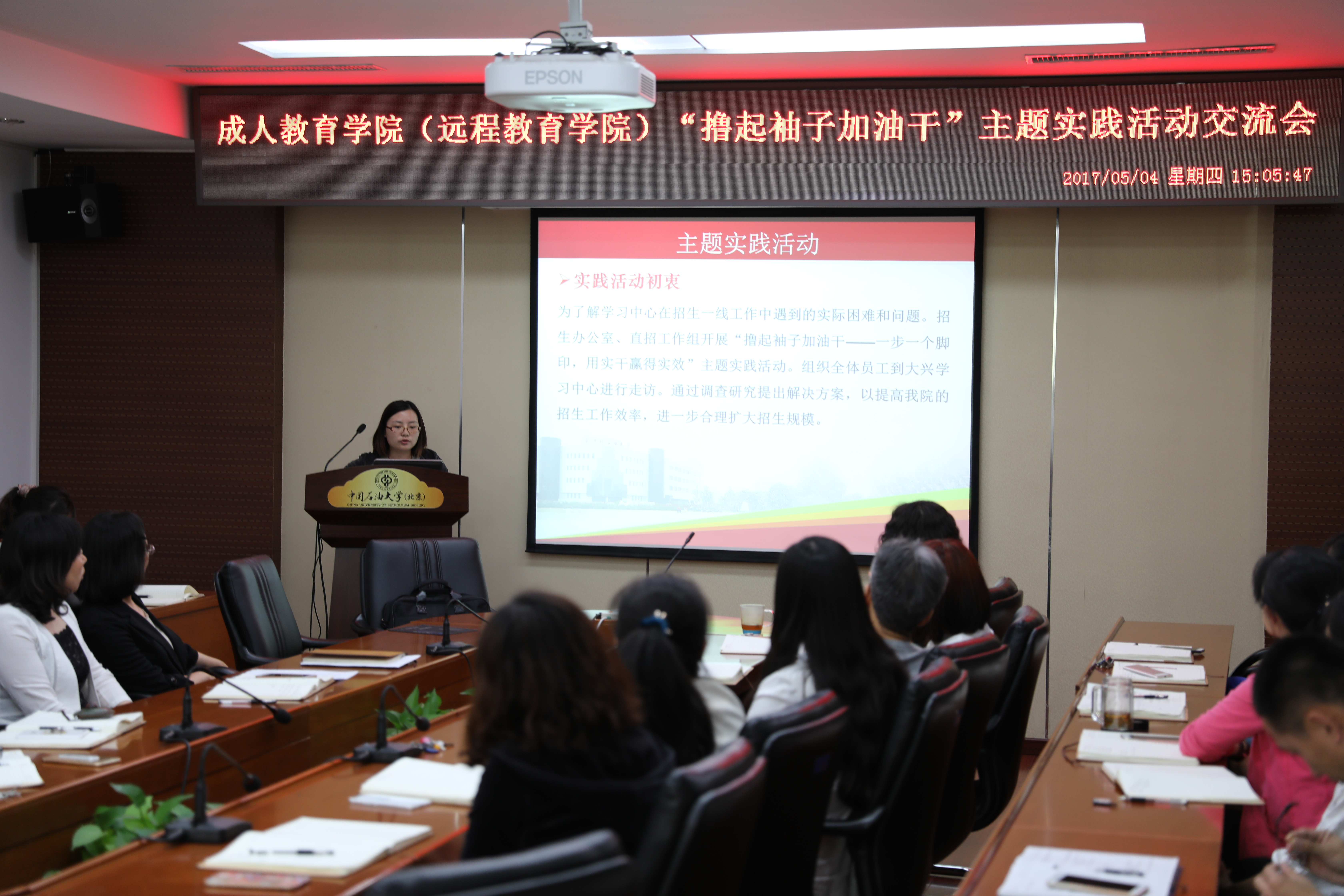 5月4日,学院召开了交流会,大家分享了实践活动的体会和成果,总结了活动的经验和不足,提出今后工作设想。通过实践活动,大家都感受到了“撸起袖子加油干”的动力和效率,也在活动中增长了知识、增强了创新意识、增进了与兄弟院校和学习中心的沟通交流。