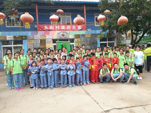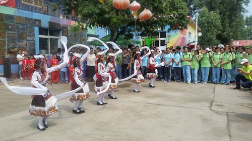 太阳村的张奶奶和孩子们跳起小苹果欢迎同学们,孩子们的表演中洋溢着幸福的喜悦,让在场的师生也都流露出欣慰的笑容。