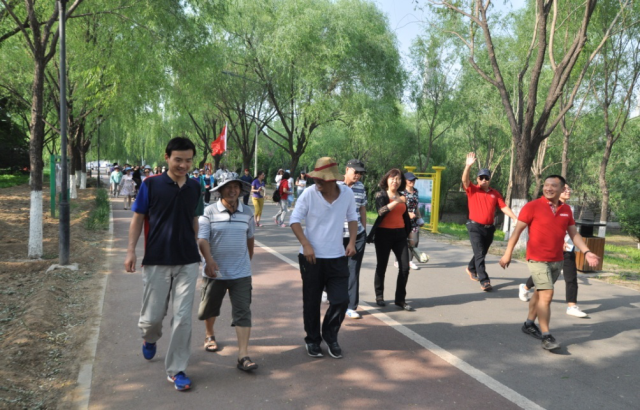 长走开始了,大家呼吸着新鲜空气,欣赏着沿途的碧水、绿树、繁花,一边快步走着,一边交流着工作和生活中的问题。虽然太阳有些晒,但丝毫未影响大家徒步健身的兴趣和快乐。仅用一个小时,就从昌平南大桥下滨河公园正门,绕行滨河公园南侧一周,走完约7公里的全程。