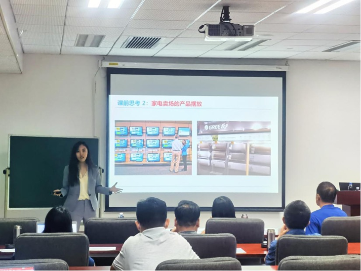 决赛评价内容包括20分钟教学演示和完整的教案设计。张璇展示的课程题目为《消费者行为学》,通过饼干包装设计和家电卖场产品摆放问题引发课堂思考,随后以爆米花实验引入教学内容,教学过程中还设计了可乐品尝实验,与学生现场互动,教学贴近生活,生动有趣又引人思考。