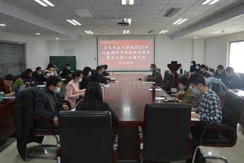 ] 1月11日上午,马克思主义学院第三届八次教职工代表大会顺利召开,全院教职工共计29人参加了会议,在通过了方凤玲院长所做《马克思主义学院2020年工作报告》、刘韵秋书记所做《马克思主义学院党总支2020年党建工作报告》、于文娟老师所做《马克思主义学院2020年财务工作报告》和工会主席张冠军同志所做2020年度工会工作总结等会议议程之后,圆满落幕。