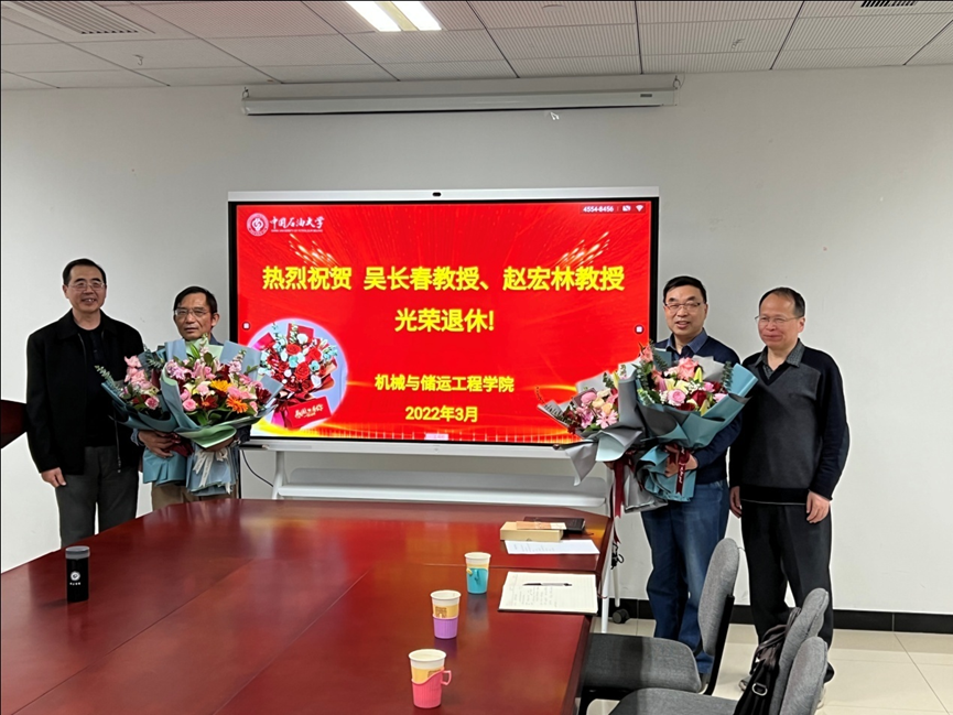 ] 3月17日下午,机械与储运工程学院在B921院会议室举行庄重而温馨的退休欢送仪式,以座谈会形式欢送吴长春教授和赵宏林教授光荣退休。机械与储运工程学院党委书记李光和,院长李振林,副院长刘书海、左丽丽,工会主席彭鹤,储运系主任刘啸奔,机电系主任张行以及部分教师参加了本次座谈会,会议由工会主席彭鹤主持。