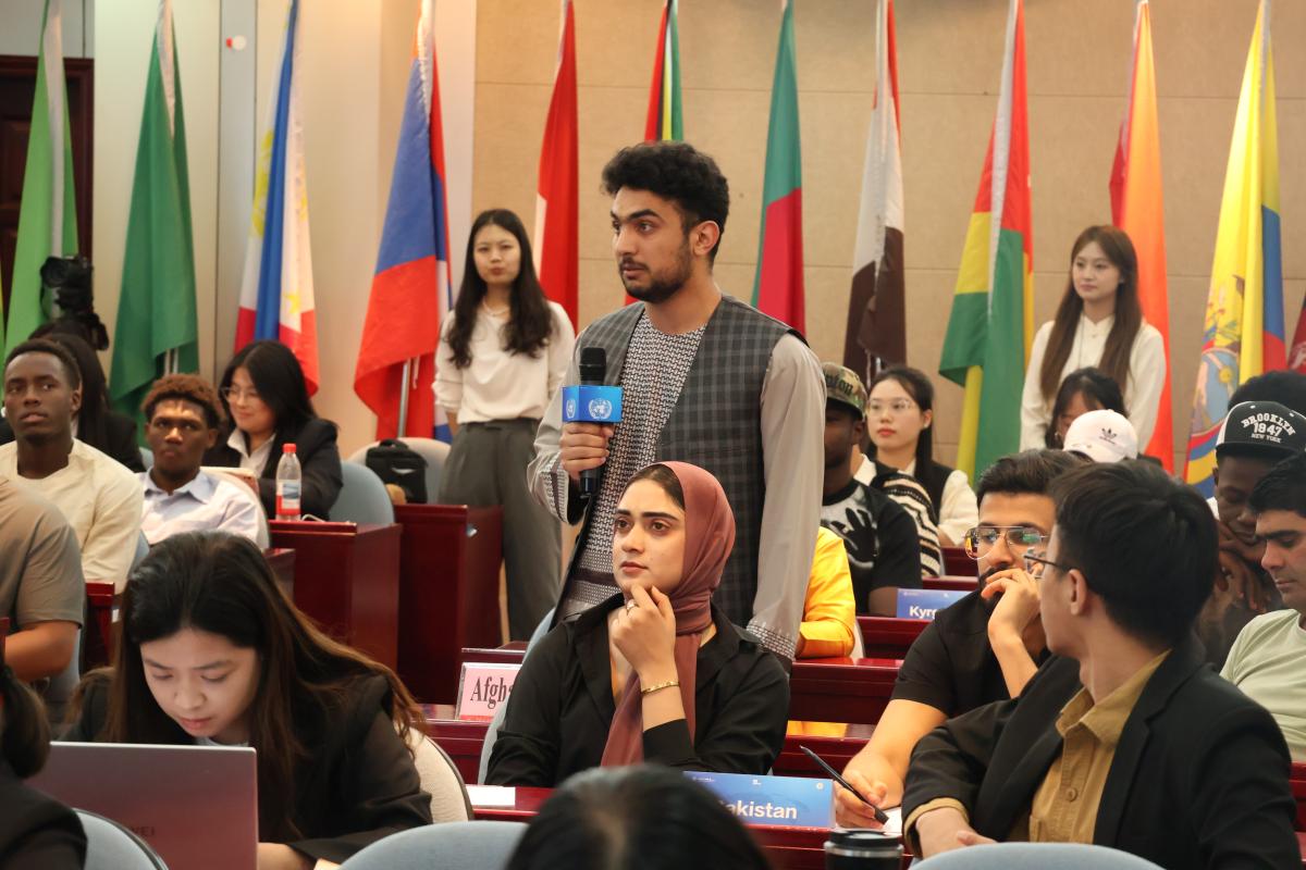 5月7日,以“讲好中国能源故事,共筑全球绿色未来”为主题的模拟联合国大会在中国石油大学(北京)举办。中石大副校长张广清,联合国工业发展组织投资和技术促进办公室(中国・北京)环境与气候议题负责人姜灏,中科浩博国际教育科技(北京)有限公司总裁孙中雯,学校国际合作与交流处、国际教育学院、教务处、外国语学院相关人员,来自中国、巴基斯坦、土库曼斯坦、南苏丹、蒙古、孟加拉国等24个国家的100名青年学生围绕气候变化、能源转型与可持续发展等议题展开深入对话。