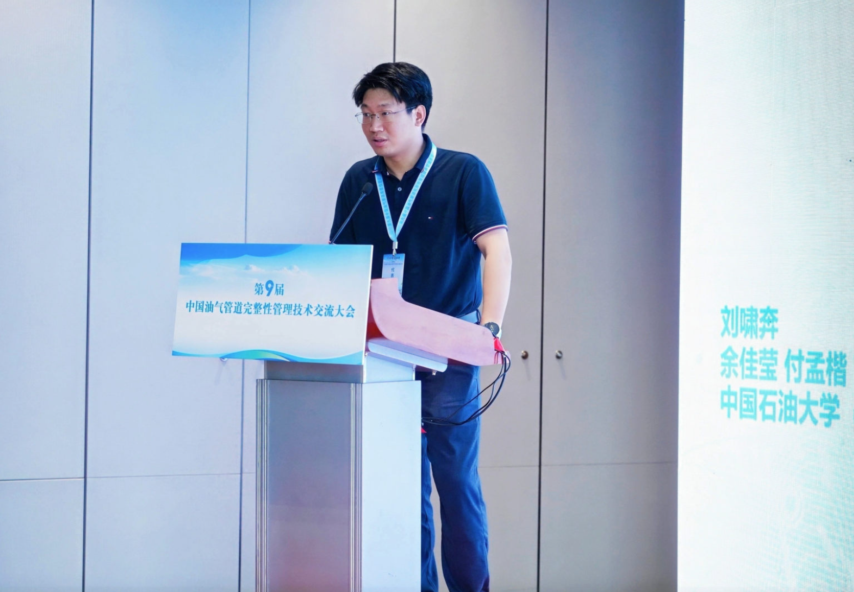 安全与海洋工程学院的樊建春教授在“油气站库完整性”论坛上作题为“特殊螺纹连接密封状态超声相控阵评估技术”报告;安全与海洋工程学院的荆琦副教授在青年论坛上作题为“高压大口径油气管道泄漏态势感知与预测评估技术”报告;机械与储运工程学院的刘啸奔副教授在青年论坛上主持并作“基于MeshGraphNets的沉降作用下管道全场应变响应预测模型”报告。