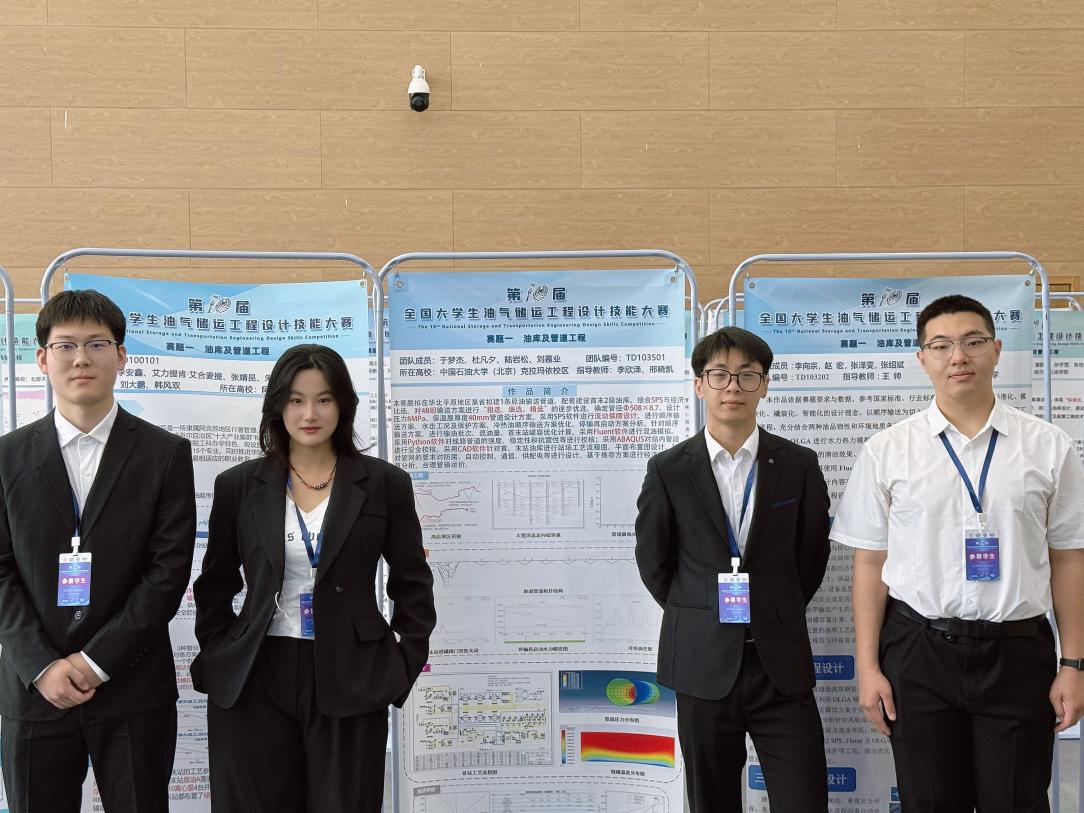 校本部机械与储运工程学院李明锐团队聚焦原油输送管道及油库系统建设任务,基于“标准化、模块化、撬装化、智能化”设计理念,构建了技术可行、经济合理、环保节能的储输一体化解决方案,获“油库及管道工程”赛题一等奖。