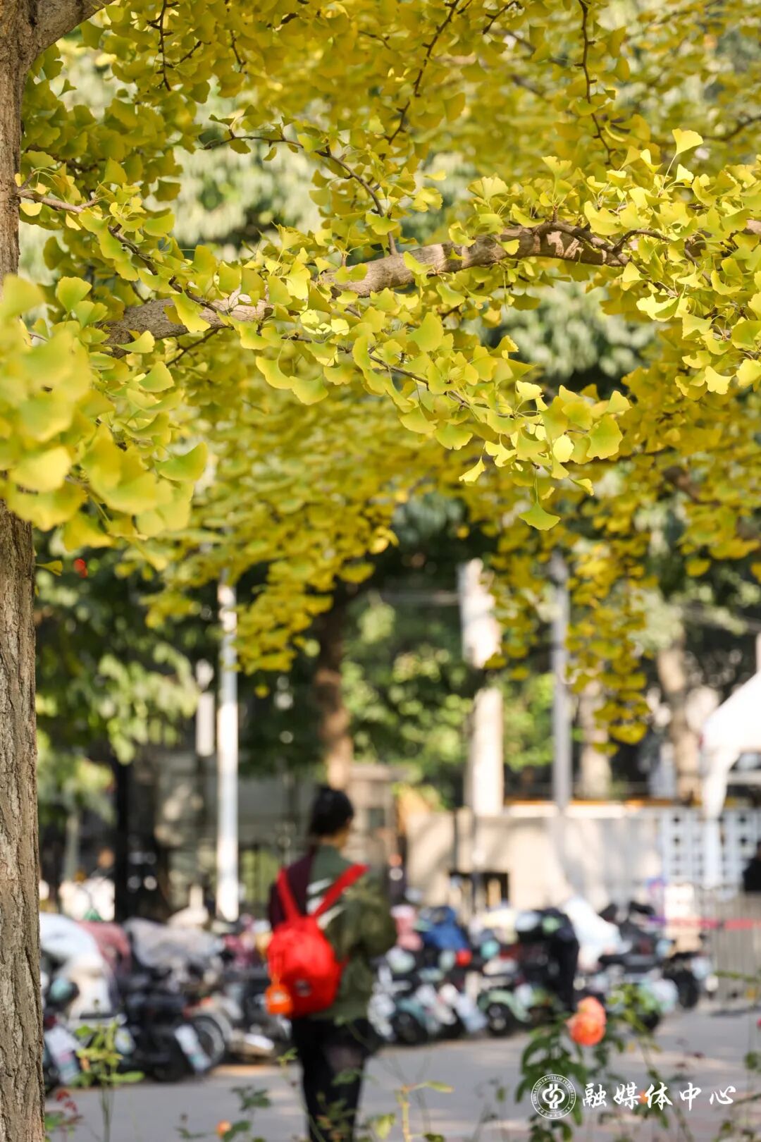 飘落的银杏叶与中石大对话,一片正红,一片橙黄,一片还带着夏末的青绿。一片叠着一片,将地面铺成一片斑斓的时光织锦