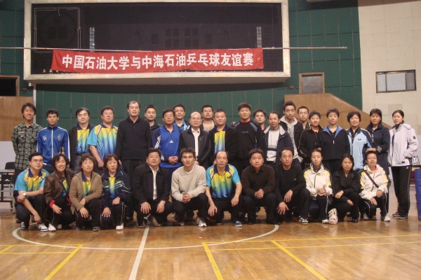 10月22日下午5点,由我校教职工兵乓球协会组织,校工会,校学生乒乓球队协办的“中国石油大学与中海石油乒乓球友谊赛”在我校多功能厅举行。