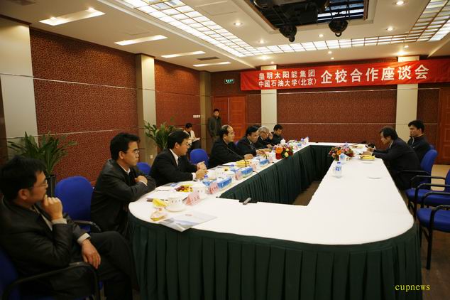 2007年11月15日,我校知名校友、皇明太阳能集团董事长黄鸣先生一行莅临我校,蒋庆哲书记、张来斌校长、徐春明副校长会见了客人,双方进行了亲切的座谈交流。老校长张一伟教授、老教师陈如恒等出席了座谈会。