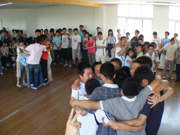 本次培训的主题为“与奥运同行,与压力共舞”,培训科目既有团队共同完成的“汪洋小舟”、“同心同行”,也有各个成员之间互动的交流共享,同时还有针对奥运服务中可能遇到的问题而进行的情景模拟表演。在整个培训过程中,同学们都显示了极高的热情,通过交流互动,同学们从陌生到熟悉,从熟悉到信任,从信任到团结。