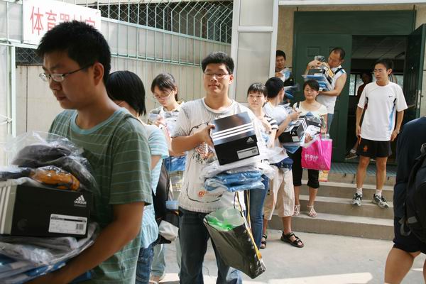 7月22日,我校近1000名奥林匹克公园公共区志愿者在校团委的组织下领取了志愿者证件及包括衬衫、外套、裤子、鞋帽等在内的志愿者制服套装和水杯、腰包等配套物资。随证还将贴有免费公交乘坐贴纸,志愿者从7月20日起可凭证免费乘坐市内公交地铁。