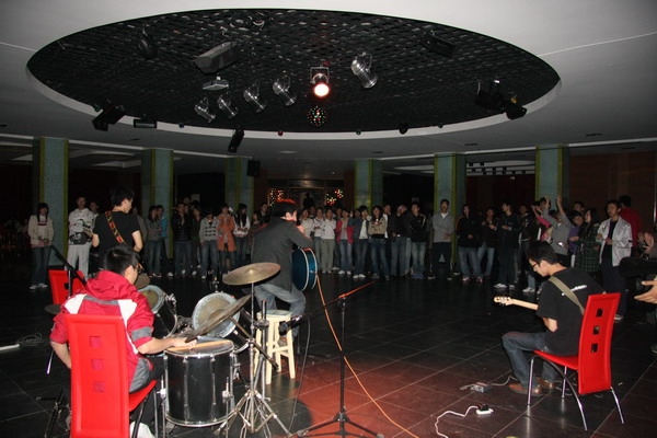 舞会由大四学生组成的9611乐队的英文重金属音乐开始。在热闹非凡的气氛中,《Rabit Dancing》的曲调响起,到场观众一起饶有兴致地跳起兔子舞,将舞会气氛推向高潮。随后又进行了合力吹气球、踩气球比赛,个人演唱等互动环节。