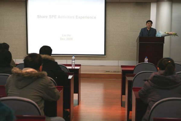 12月18日下午,由校团委主办、校研究生会承办的双百讲堂系列之四十一在国际交流中心报告厅举行,大庆油田公司副总工程师刘合先生应邀作“Share SPE Activities Experience”专题讲座。