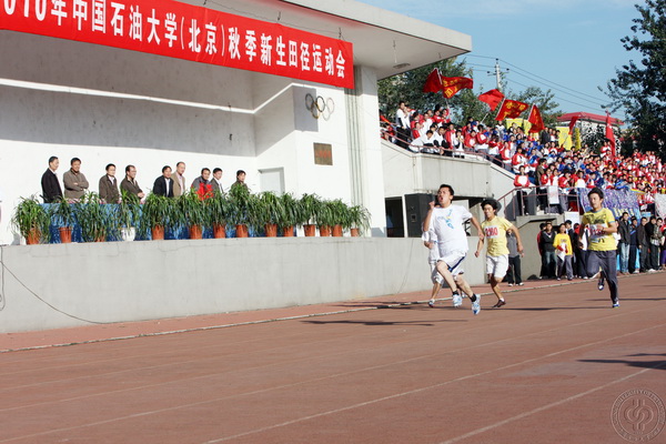 10月16日,中国石油大学2010年秋季新生田径运动会在红旗操场举行,共有近500名运动健儿参加了28个项目的比赛。秋高气爽,阳光明媚,赛场上健儿奋勇拼搏,看台上啦啦队声势夺人,赛会气氛热烈,争夺激烈,展现了石油大学优良的体育传统和蓬勃向上的精神面貌。
