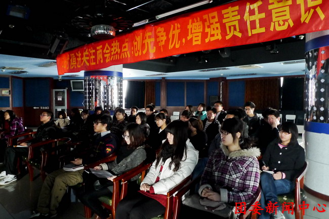 3月5日上午九时,中国石油大学学生委员会以“与时俱进,关注两会热点;创先争优,增强责任意识”为主题,自发组织学生委员在润杰综合楼十楼收看了第十一届全国人大四次会议开幕会现场直播。